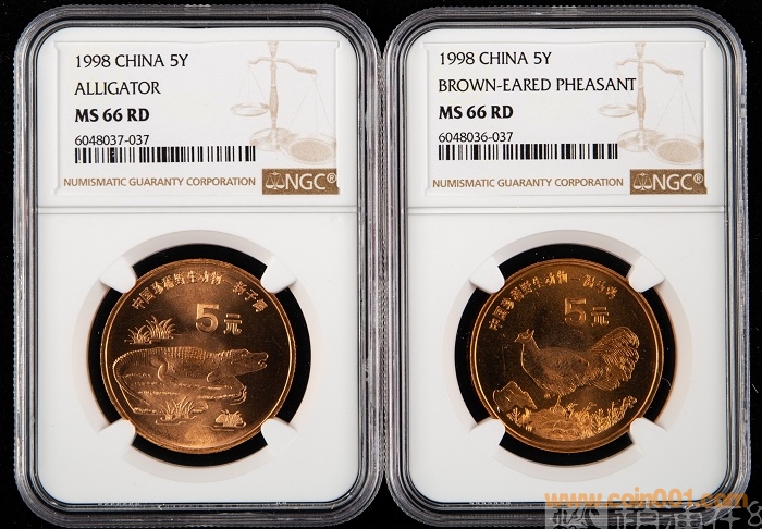 褐馬雞揚(yáng)子鱷一對(duì)MS66-165 MS67-600