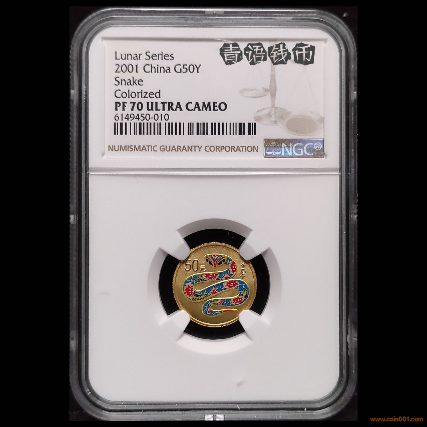 2001年辛已蛇年生肖1/10盎司精制彩金幣 NGC PF70 / 3950