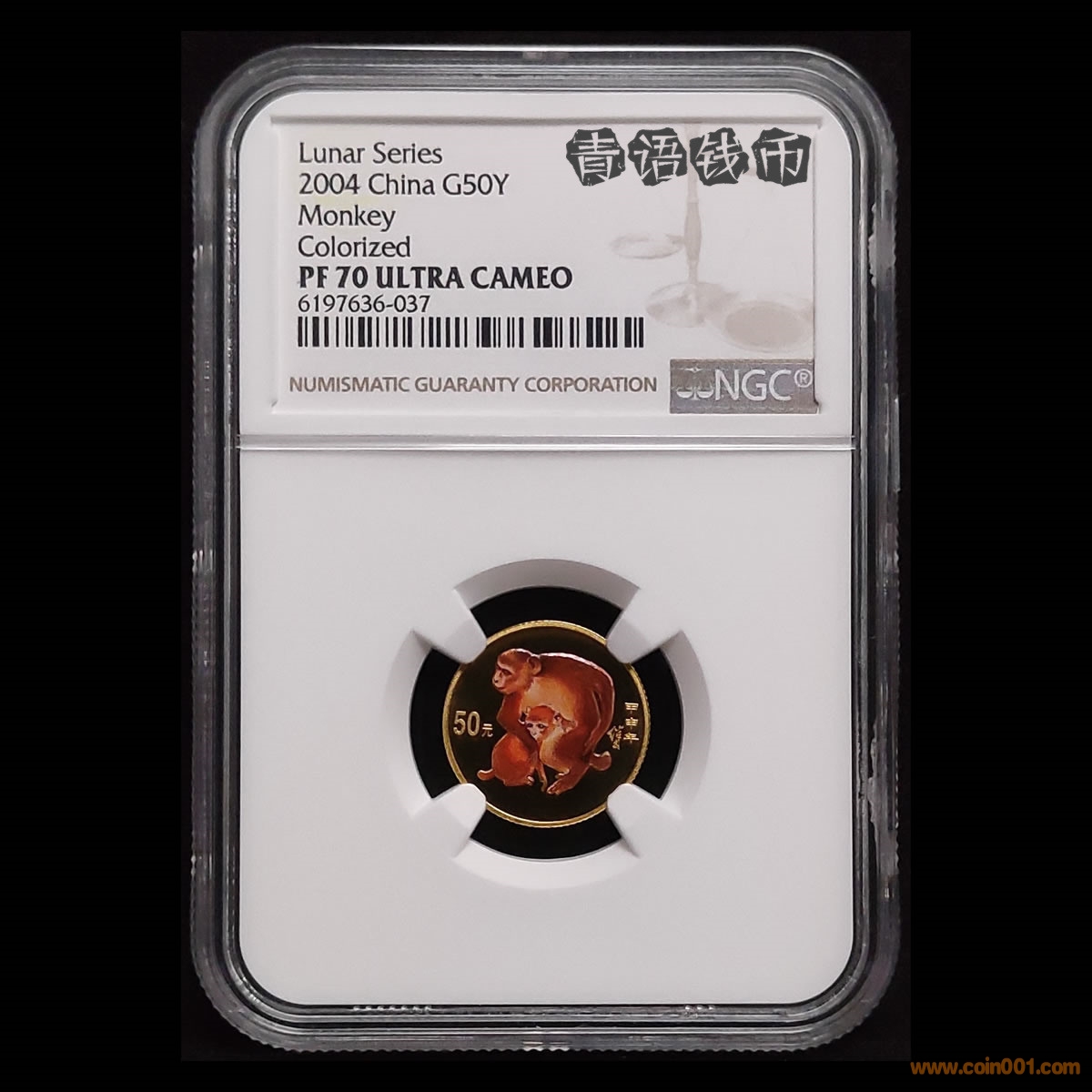 2004年甲申猴年生肖1/10盎司精制彩金幣 NGC PF 70 / 3700