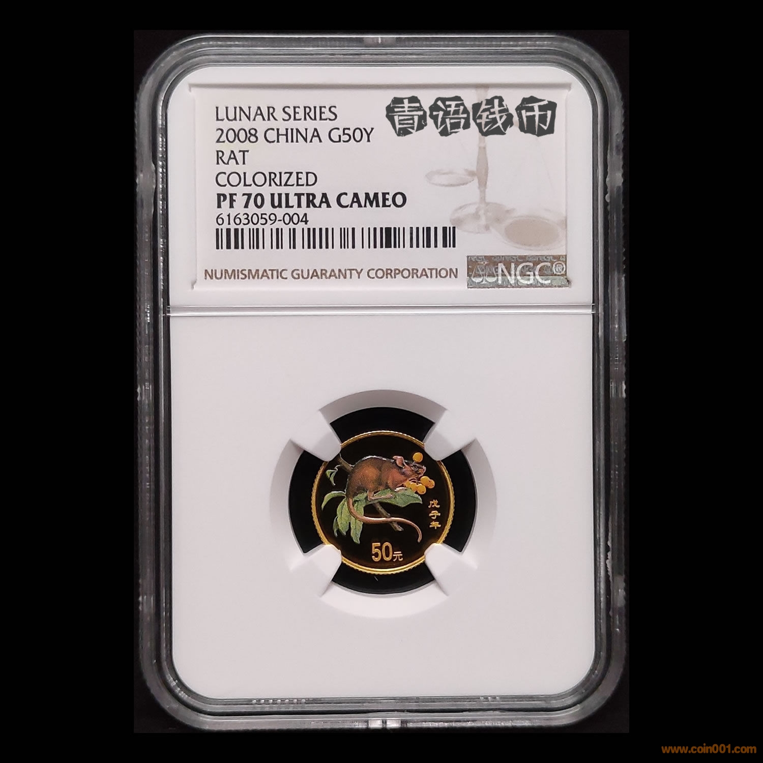 2008年戊子鼠年生肖1/10盎司精制彩金幣 NGC PF70 / 3500