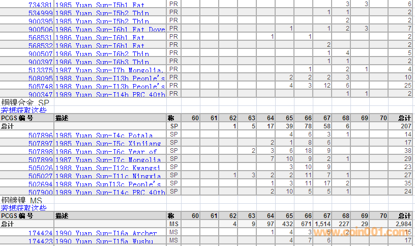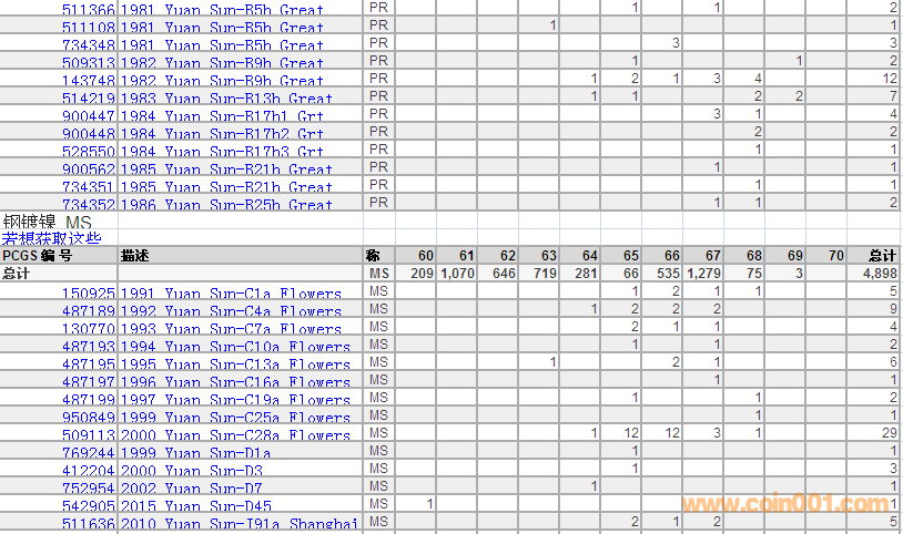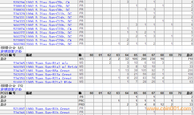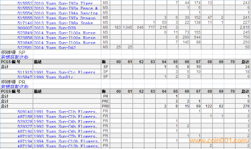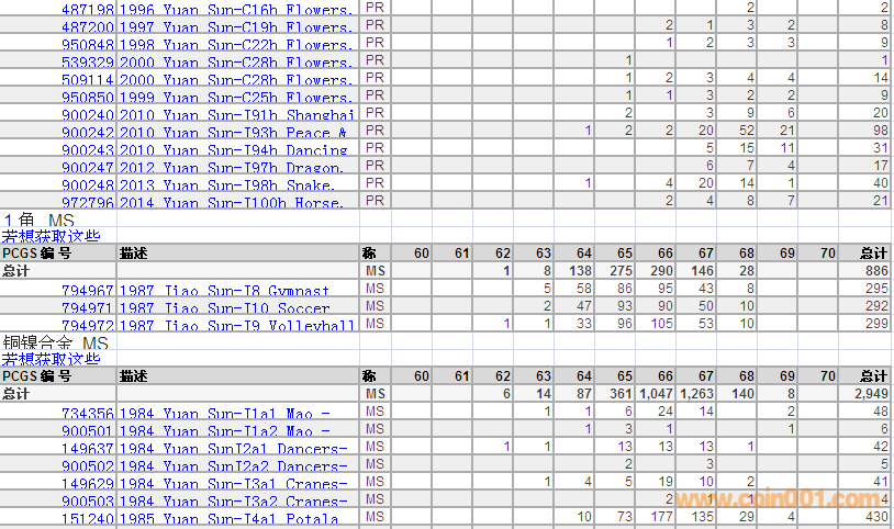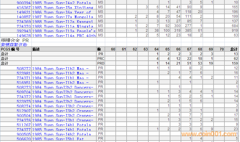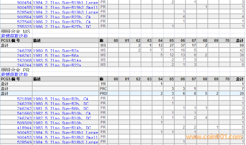 PCGS硬幣評級數(shù)量報(bào)告 ..