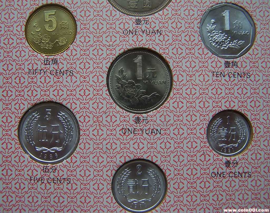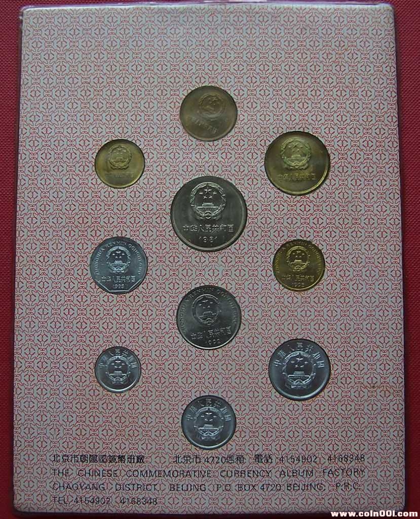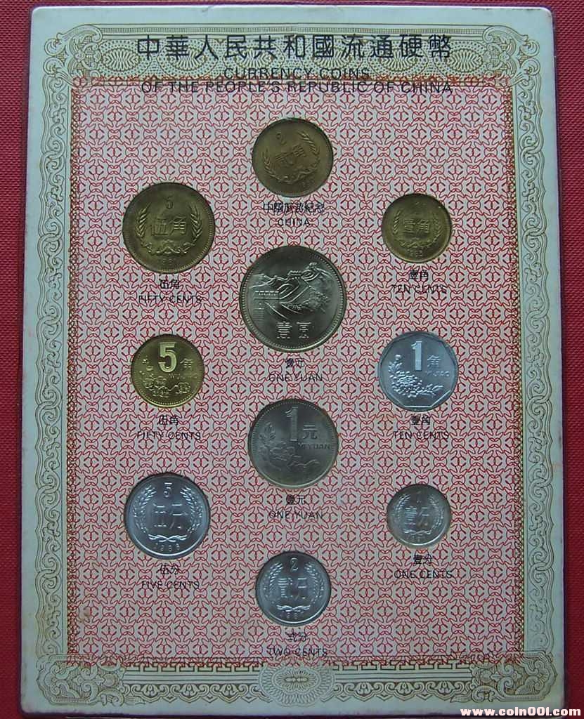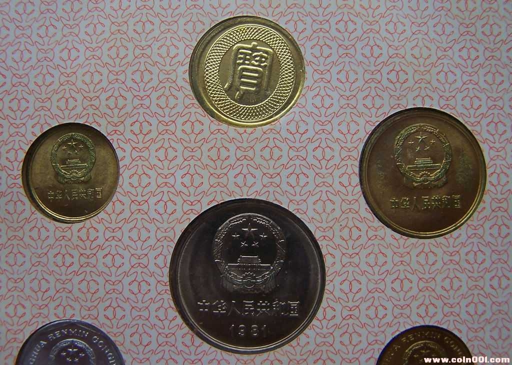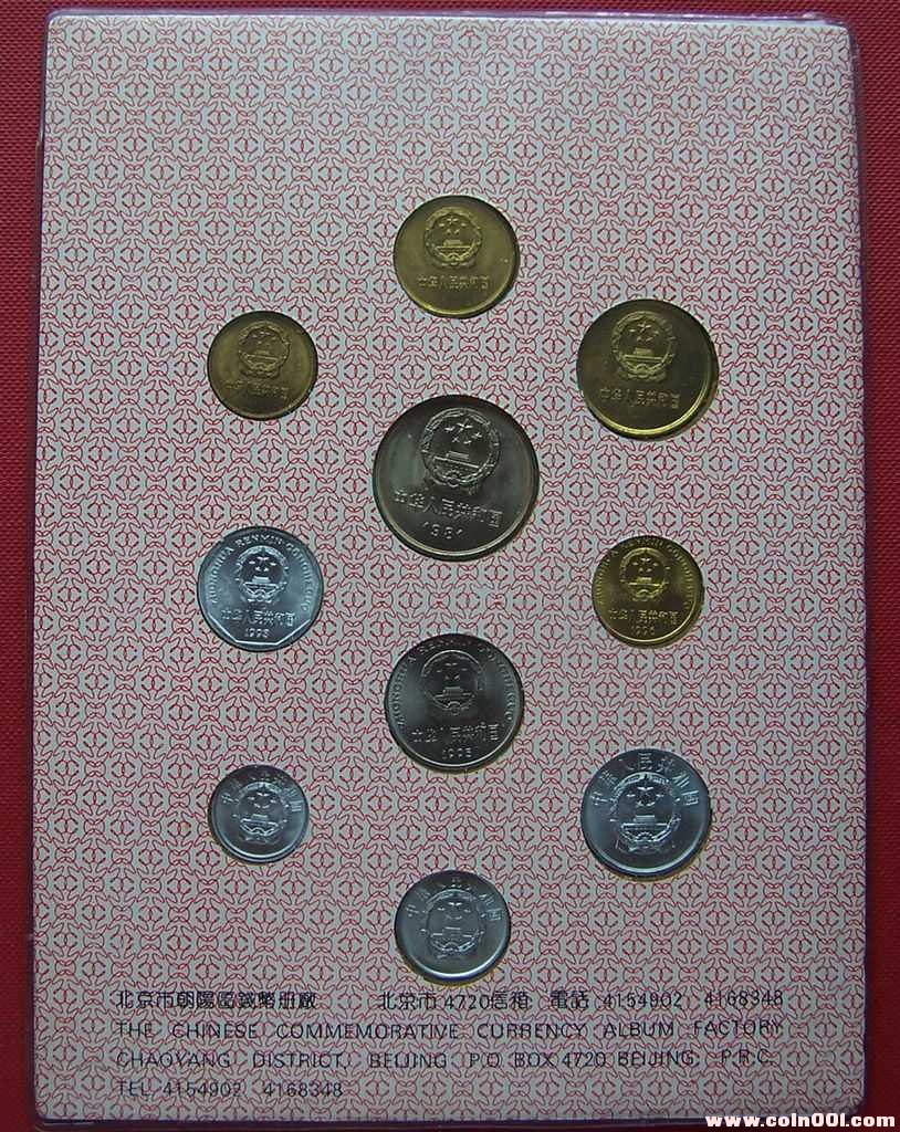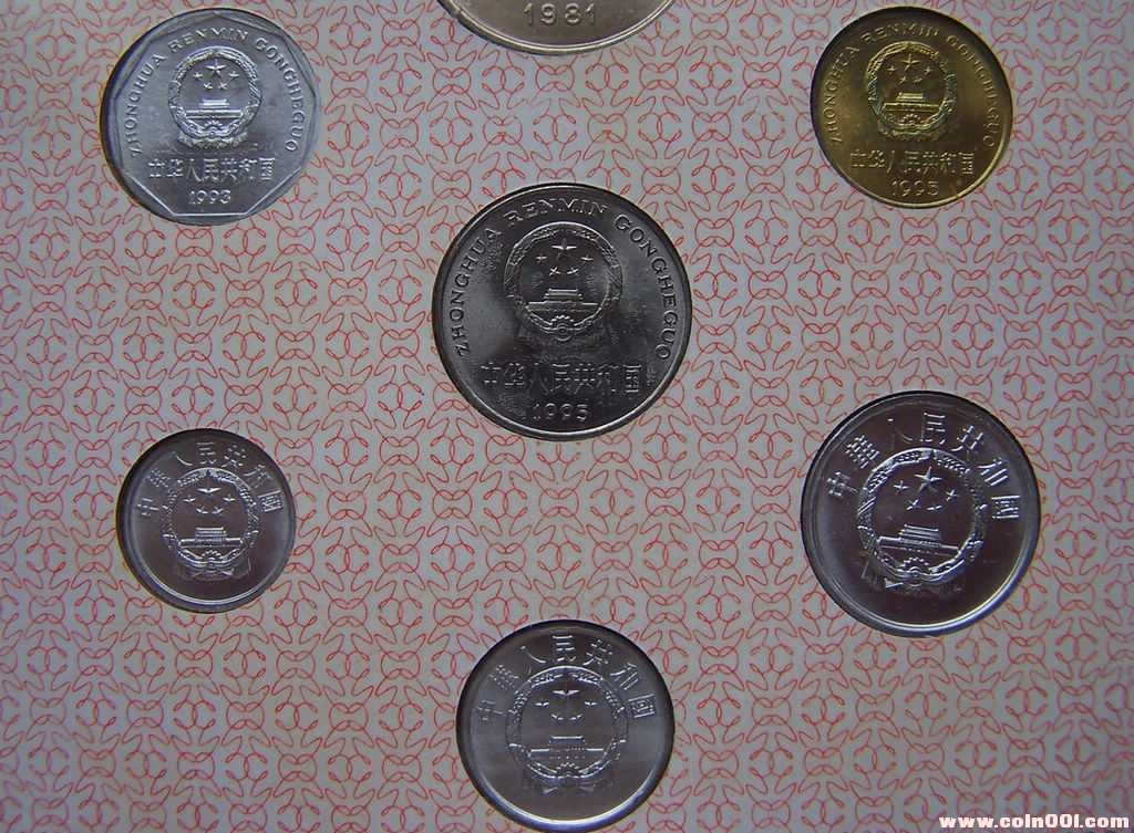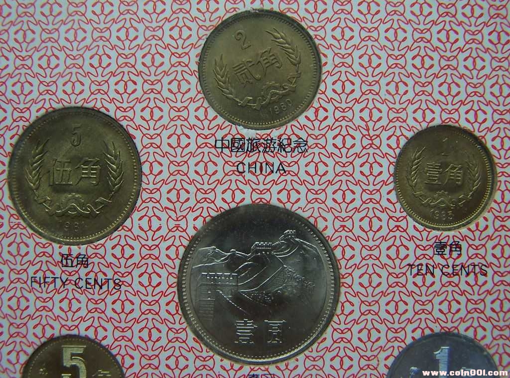 長城幣壹元1981年、伍角1981年、貳角1981年、壹角1981年;普通壹元1995年、伍角1996年、壹角1993年;伍分1992年、貳分1983年、壹分1991