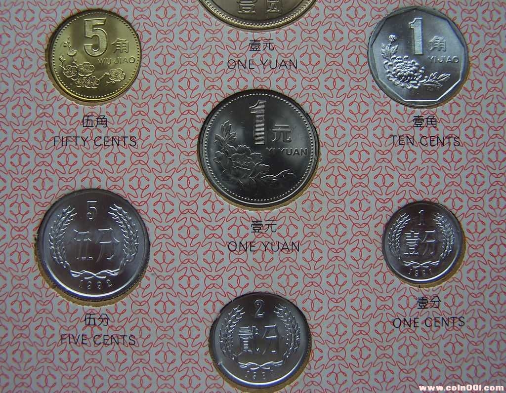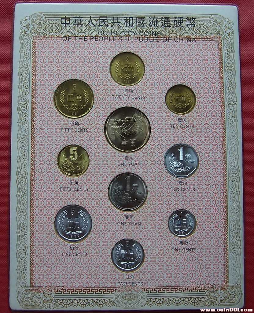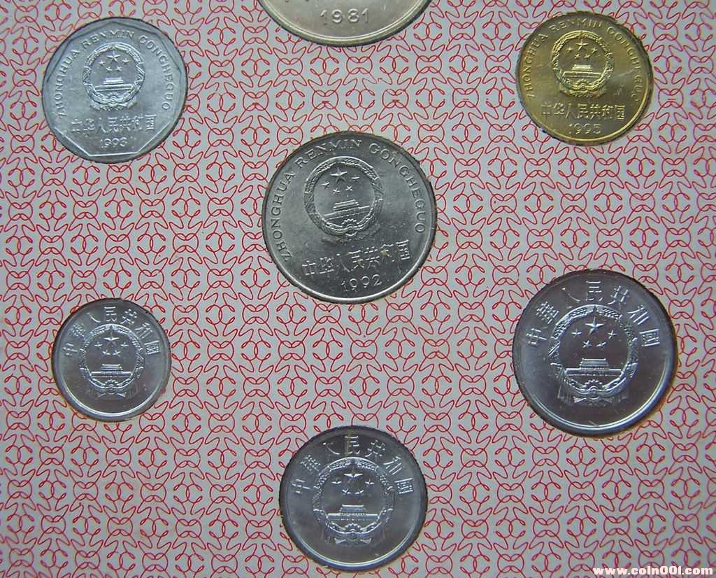 長城幣壹元1981年、伍角1981年、貳角1980年、壹角1985年;普通壹元1992年、伍角1995年、壹角1993年;伍分1986年、貳分1987年、壹分1991