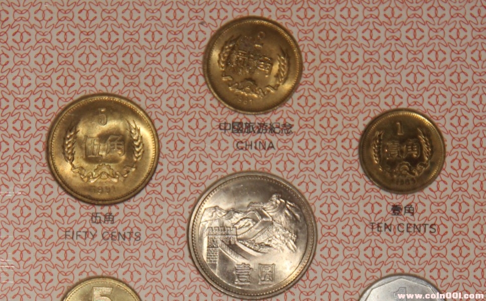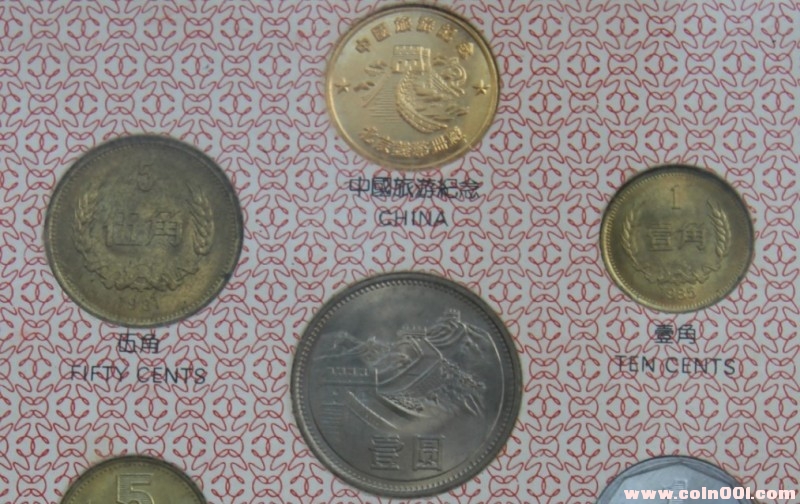 五 中國旅游紀(jì)念章流通硬幣板卡,內(nèi)含