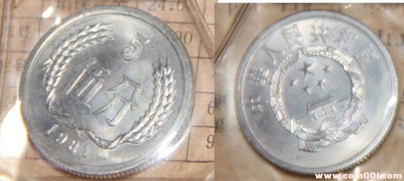 內(nèi)含一枚平版81年1分和一枚平版81年5分