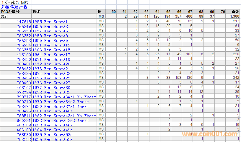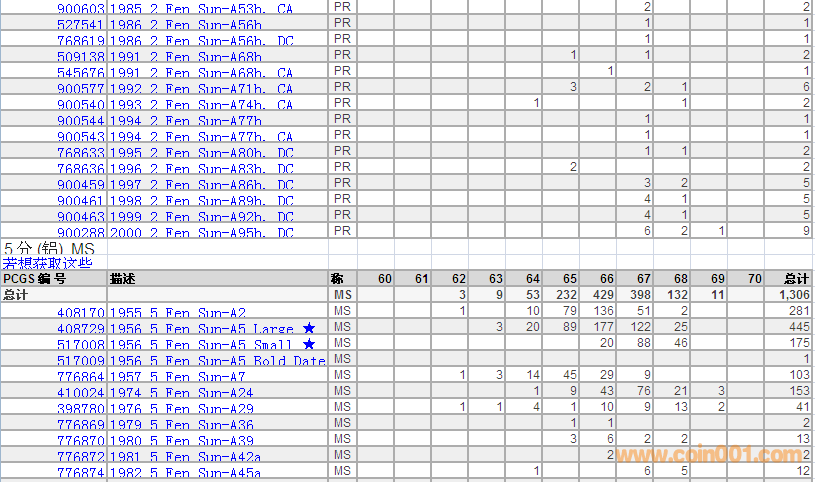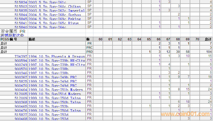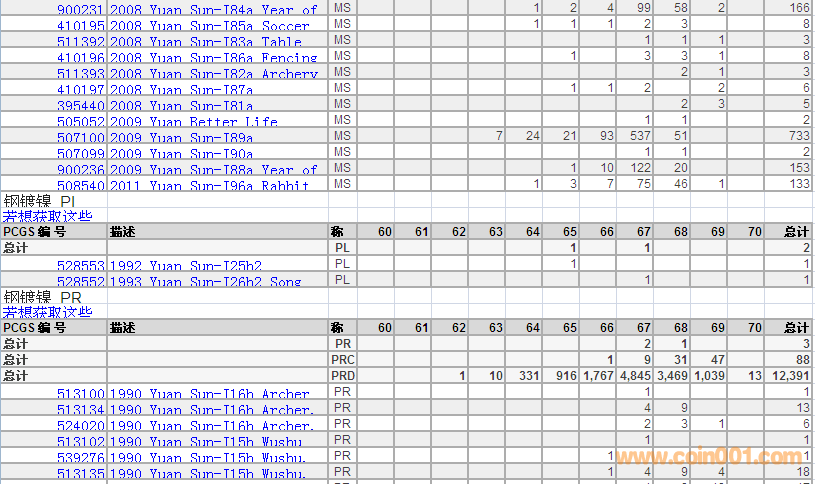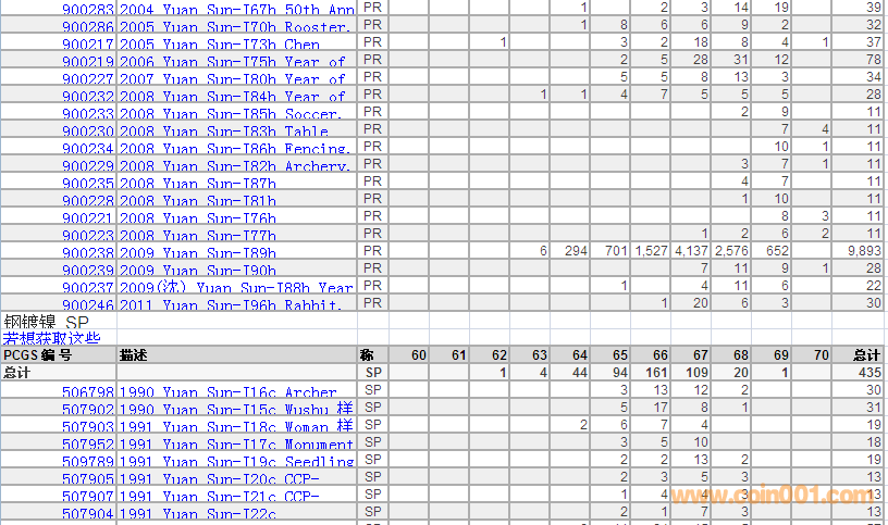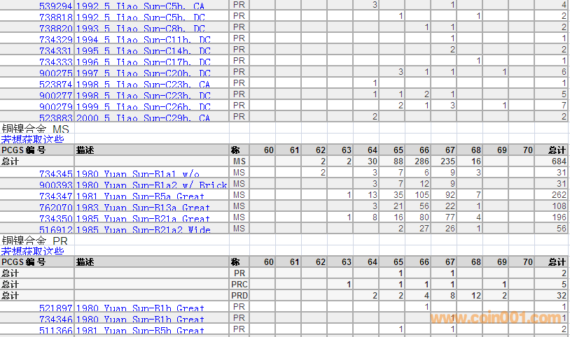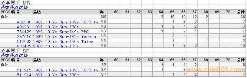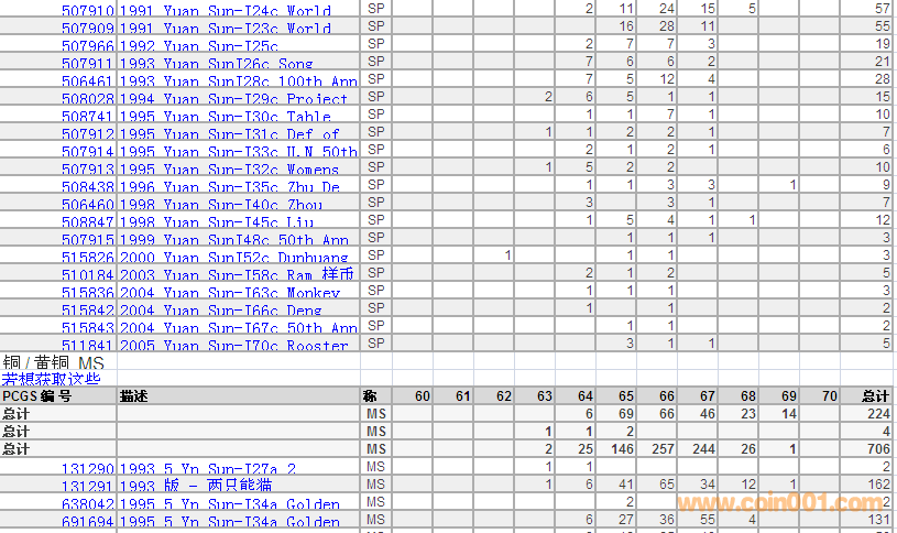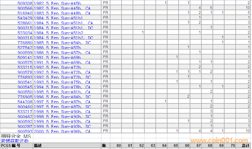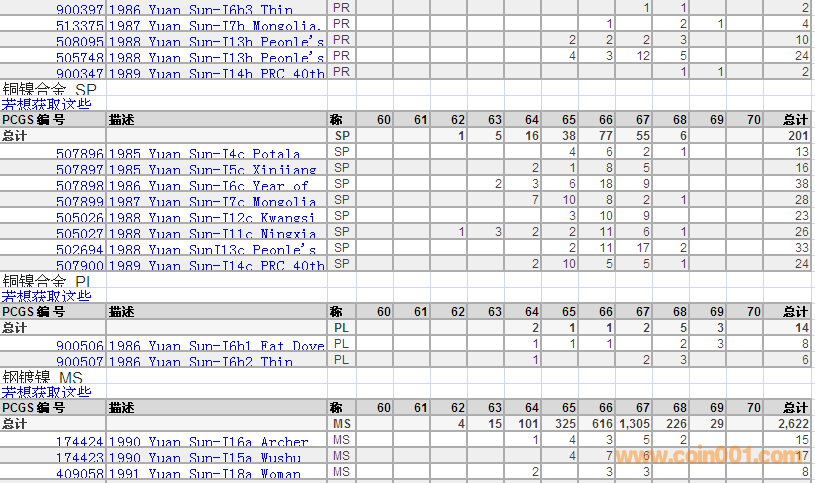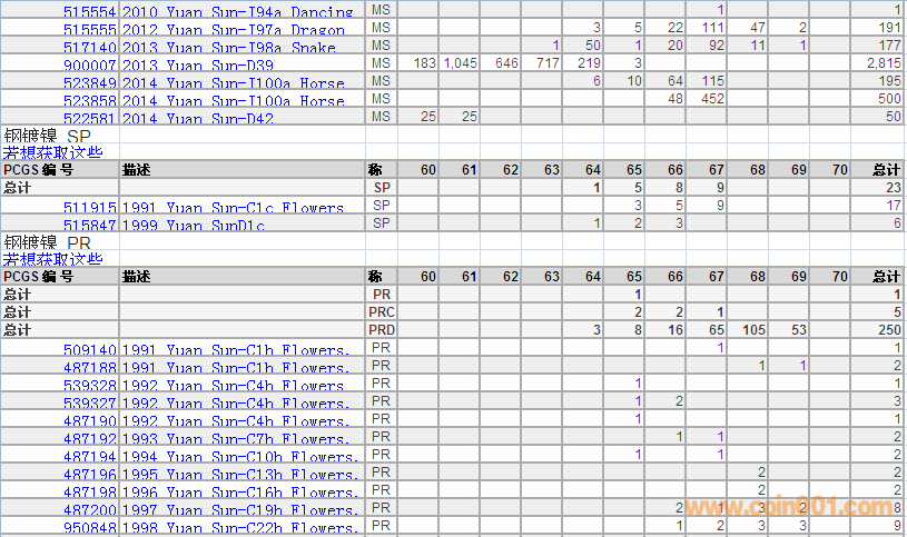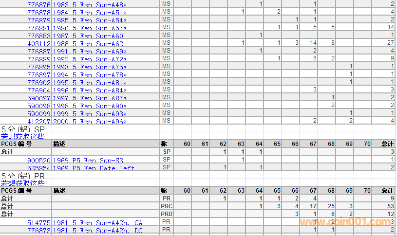 PCGS硬幣評(píng)級(jí)分?jǐn)?shù)分布 ..