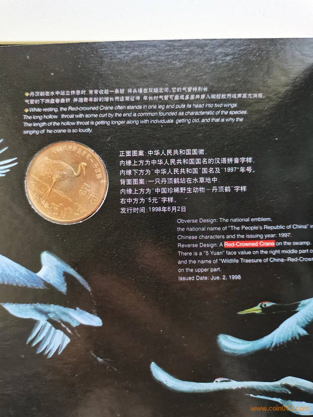 代友售:1、中國珍稀野生動(dòng)物紀(jì)念幣豪華珍藏冊(cè)一套,由人民銀行發(fā)行,授權(quán)北京康銀閣,全套共10枚,含1993年熊貓、金絲猴、華南虎、白鰭豚、朱鹮、丹頂鶴、揚(yáng)子鱷、褐馬雞、中華鱘、金斑啄鳳,500元。2、中國珍稀野生動(dòng)物紀(jì)念幣千禧珍藏冊(cè)一套,全套共10枚,含1993年熊貓、金絲猴、華南虎、白鰭豚、朱鹮、丹頂鶴、揚(yáng)子鱷、褐馬雞、中華鱘、金斑啄鳳,440元。