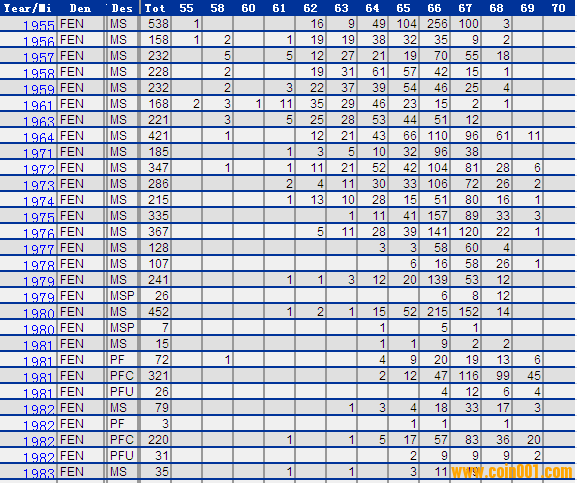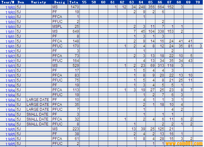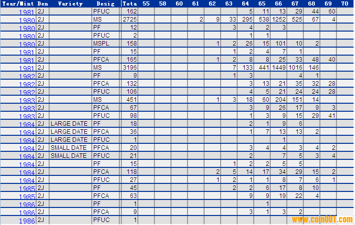 NGC硬幣評級分?jǐn)?shù)分布 ..