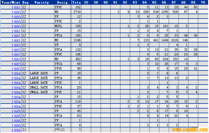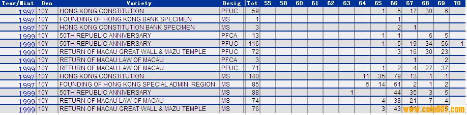 NGC硬幣評(píng)級(jí)分?jǐn)?shù)分布 ..