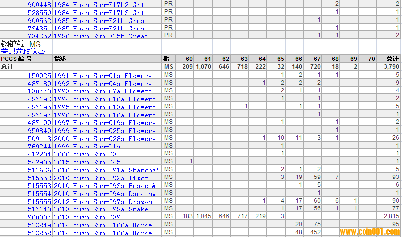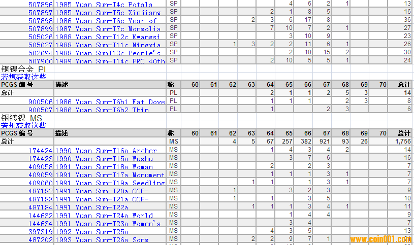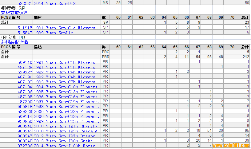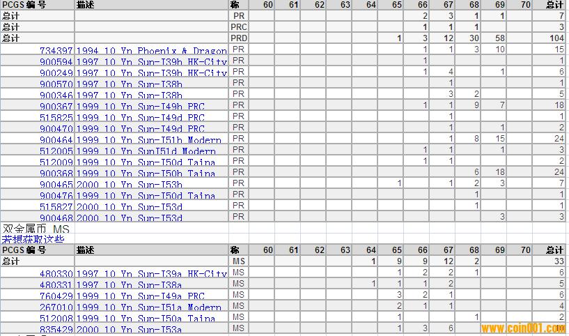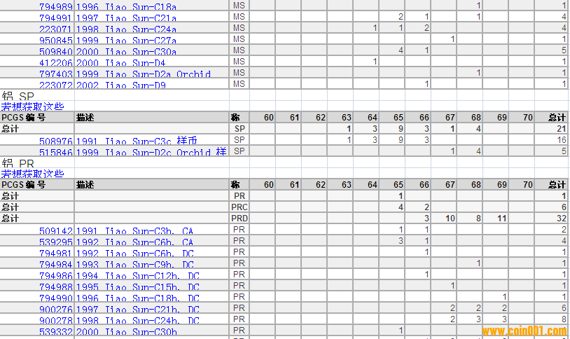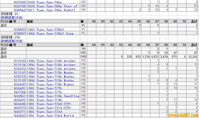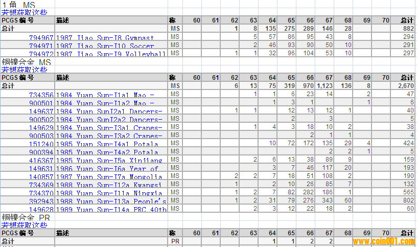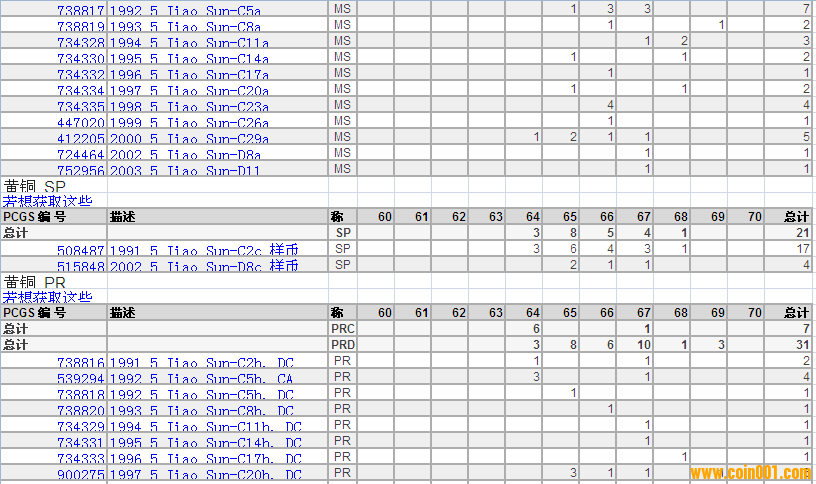 PCGS硬幣評級分?jǐn)?shù)分布 ..