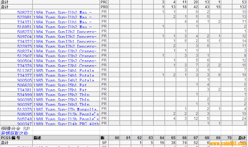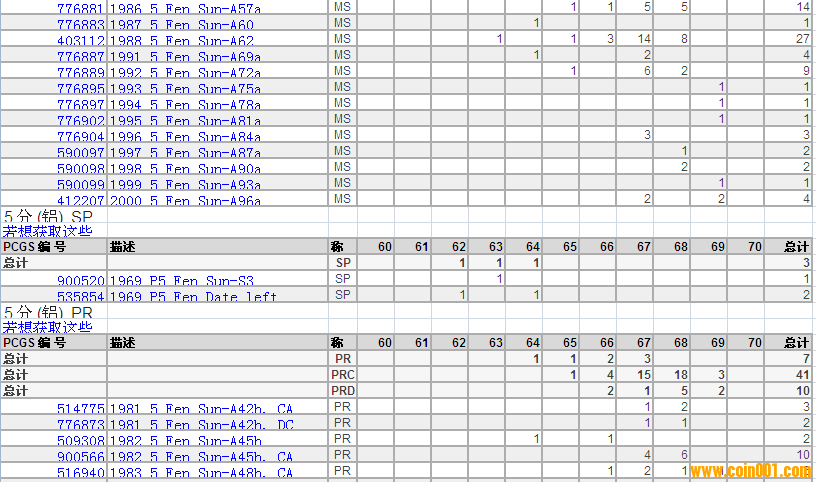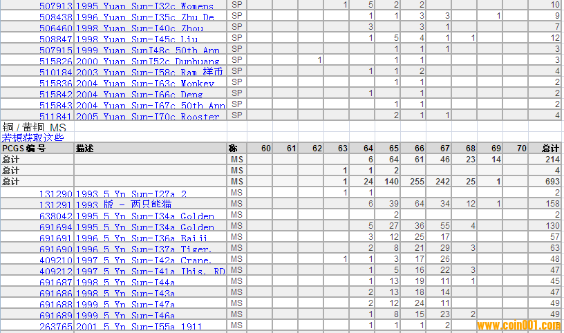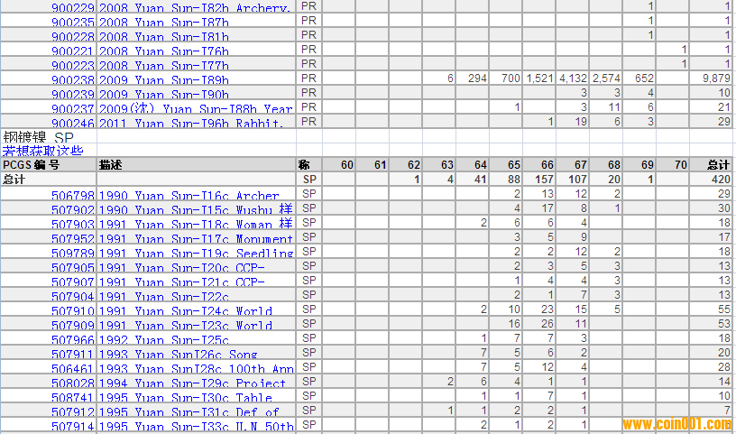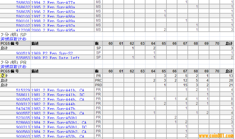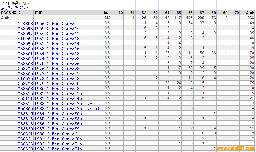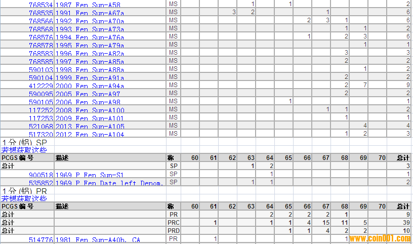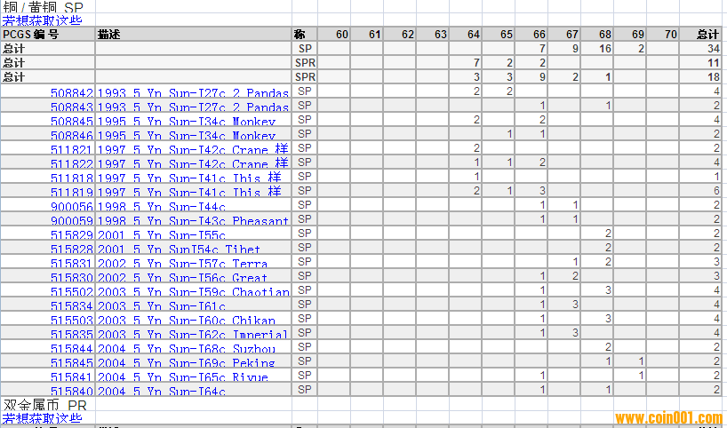 PCGS硬幣評級分?jǐn)?shù)分布 ..