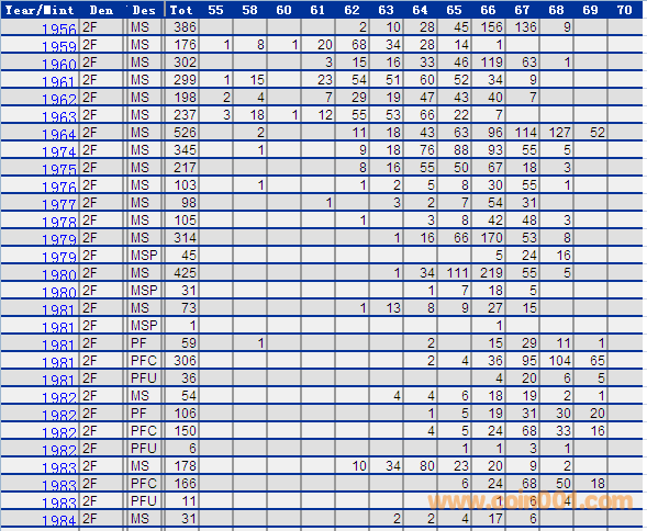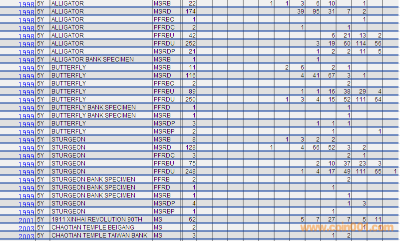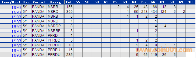 NGC硬幣評級分數(shù)分布 ..