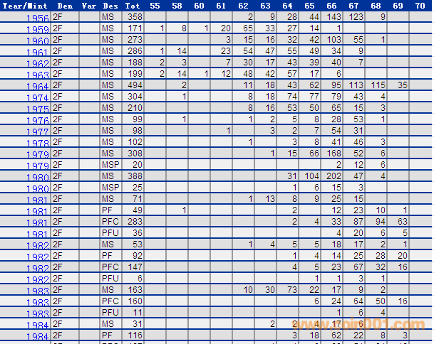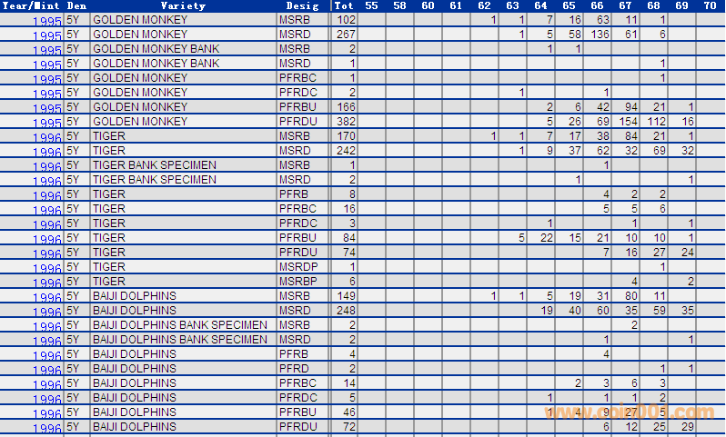 NGC硬幣評級分?jǐn)?shù)分布 ..