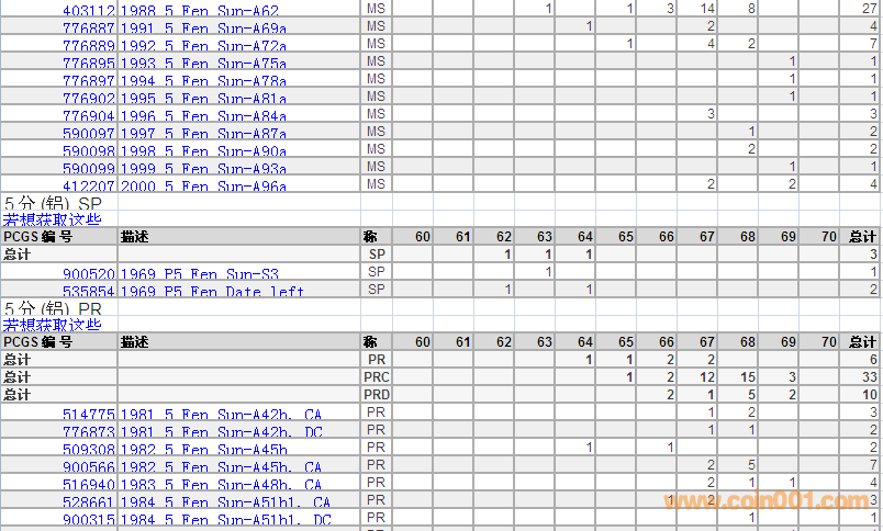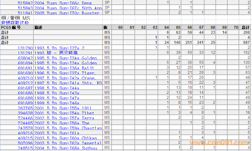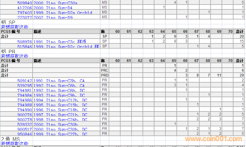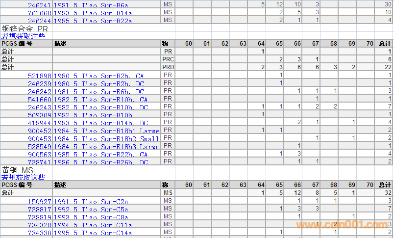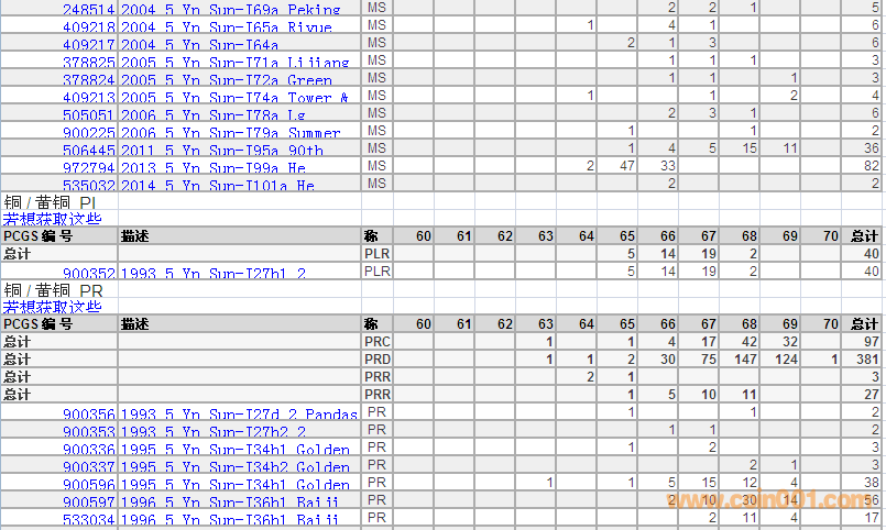 PCGS硬幣評(píng)級(jí)分?jǐn)?shù)分布 ..