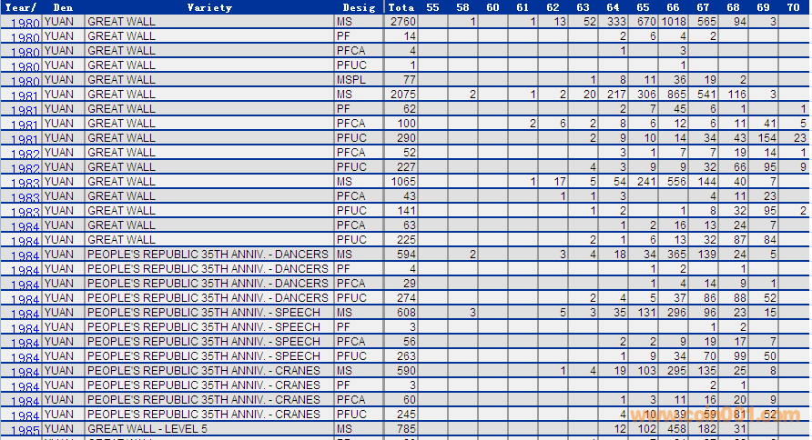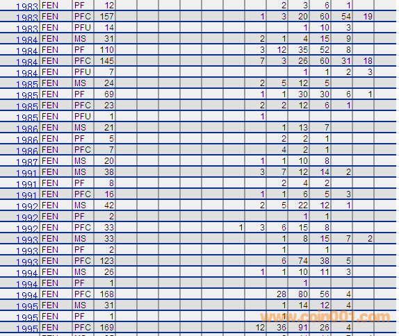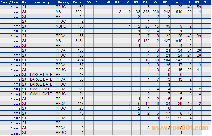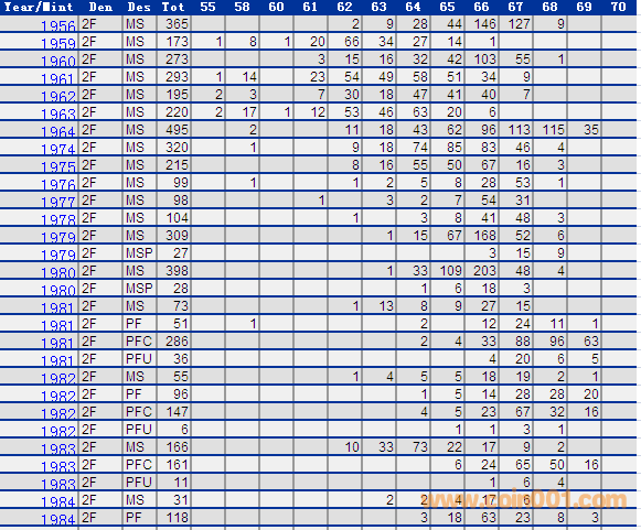 NGC硬幣評級分數(shù)分布 ..