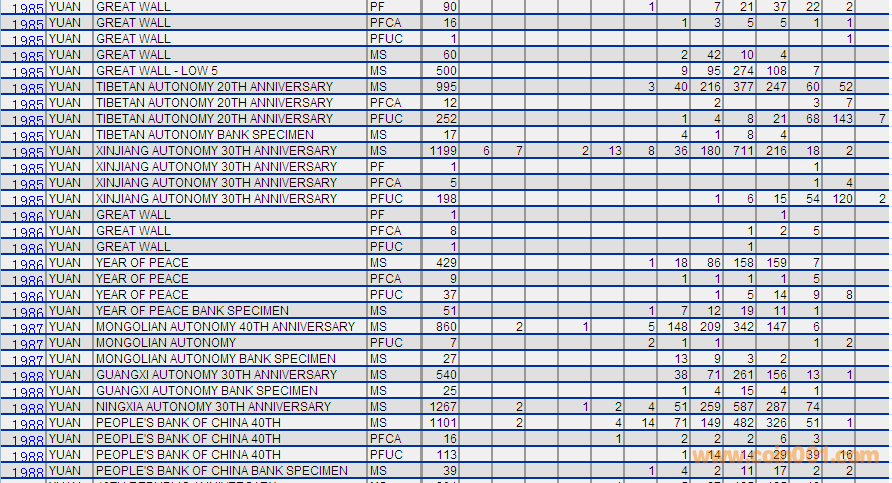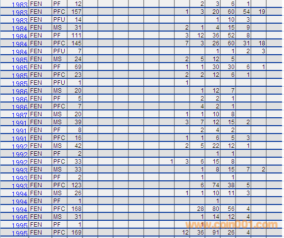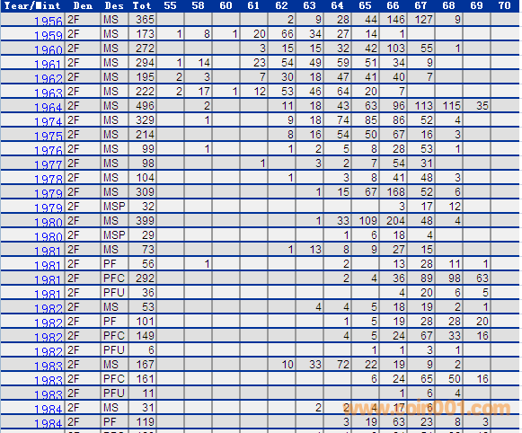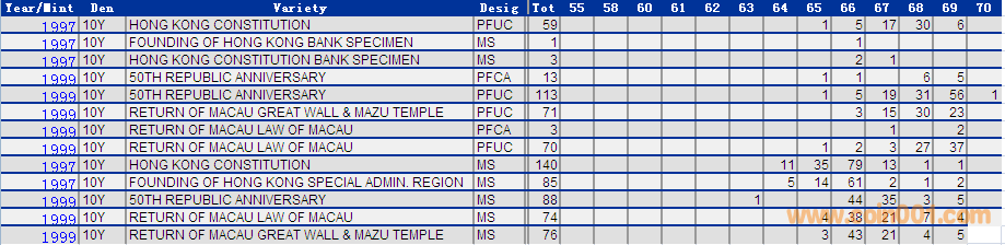 NGC硬幣評級分?jǐn)?shù)分布 ..