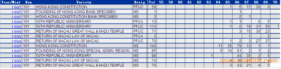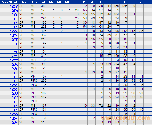 NGC硬幣評(píng)級(jí)分?jǐn)?shù)分布 ..