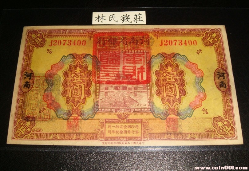 『軍鈔』河南省銀行-壹圓-加蓋河南財政廳印-原票九五品-