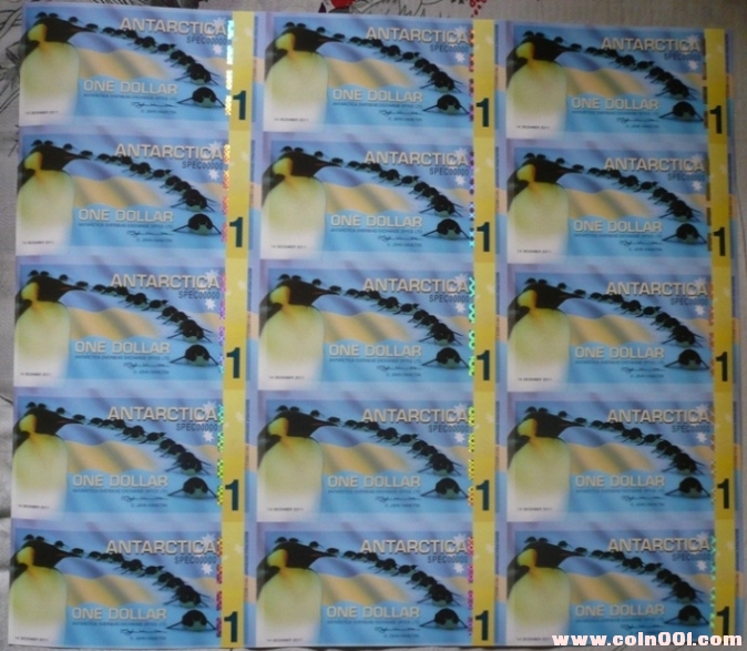 南極元企鵝塑料連體紀念鈔,為紀念1911年12月14日人類首次成功登陸南極大陸100周年特別發(fā)行。