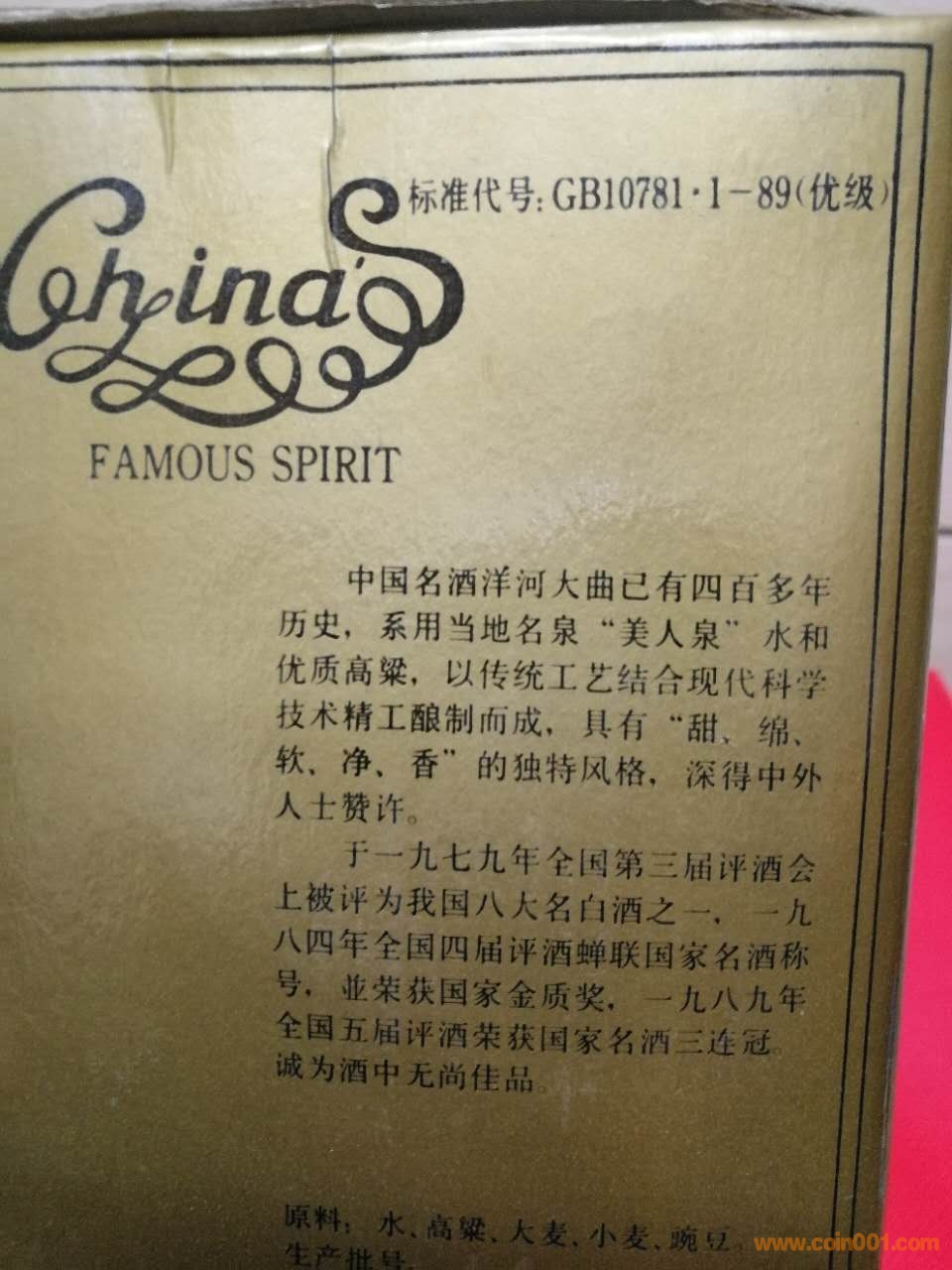 洋河大曲已有三百多年歷史,產(chǎn)于江蘇省泗陽(yáng)縣洋河鎮(zhèn),因地故名。洋河鎮(zhèn)是一個(gè)古老的集鎮(zhèn),地處江蘇省宿遷市的宿城、宿豫、泗洪三縣區(qū)交匯處,面臨徐淮公路,背靠京杭運(yùn)河,交通暢達(dá),酒業(yè)興旺,市場(chǎng)繁榮。 洋河大曲古語(yǔ)云:“水為酒之血,曲為酒之骨”。故“名酒產(chǎn)地必有佳泉”的論斷是有科學(xué)根據(jù)的。名酒“洋河大曲”產(chǎn)于江蘇省泗陽(yáng)縣,就是用當(dāng)?shù)亍懊廊巳钡乃勚贫傻?。?shī)人稱贊。又稱“國(guó)公酒”。