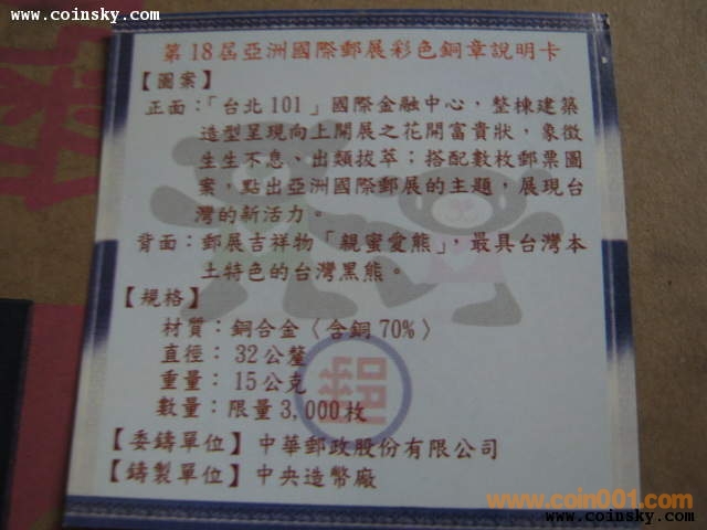 18屆亞洲郵展銀幣 及 ..