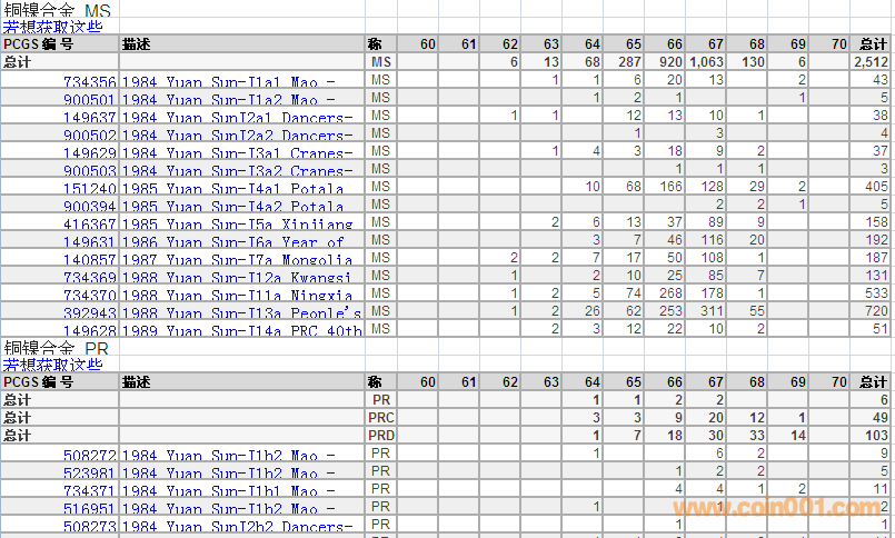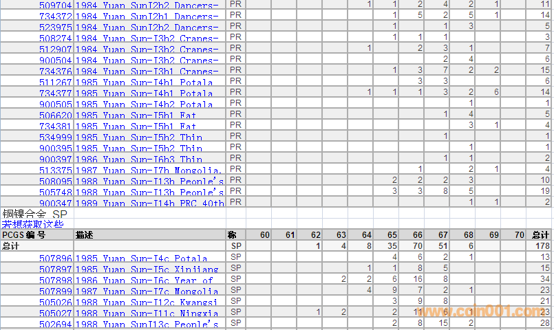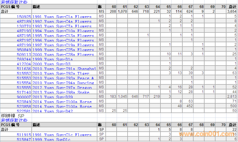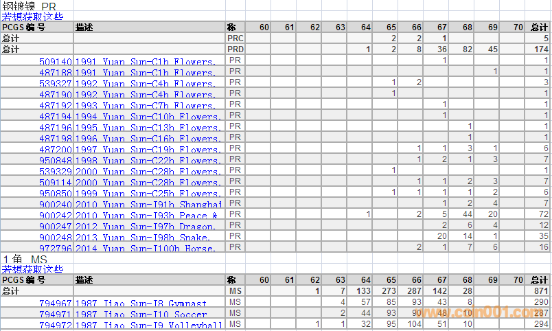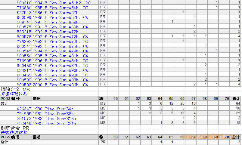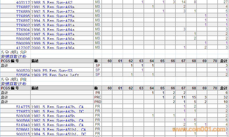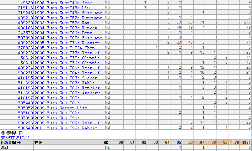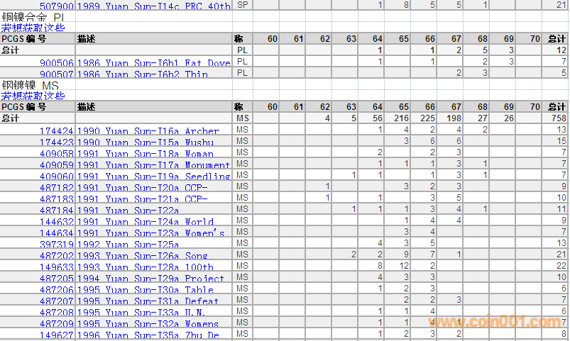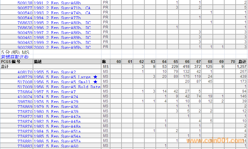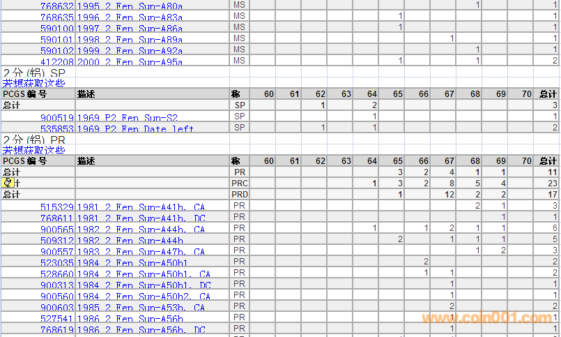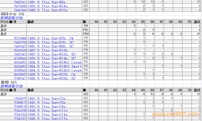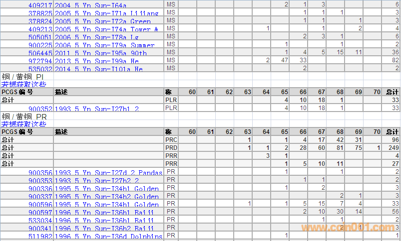 PCGS硬幣評(píng)級(jí)分?jǐn)?shù)分布 ..