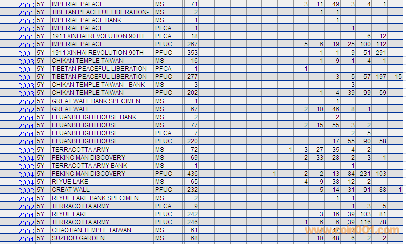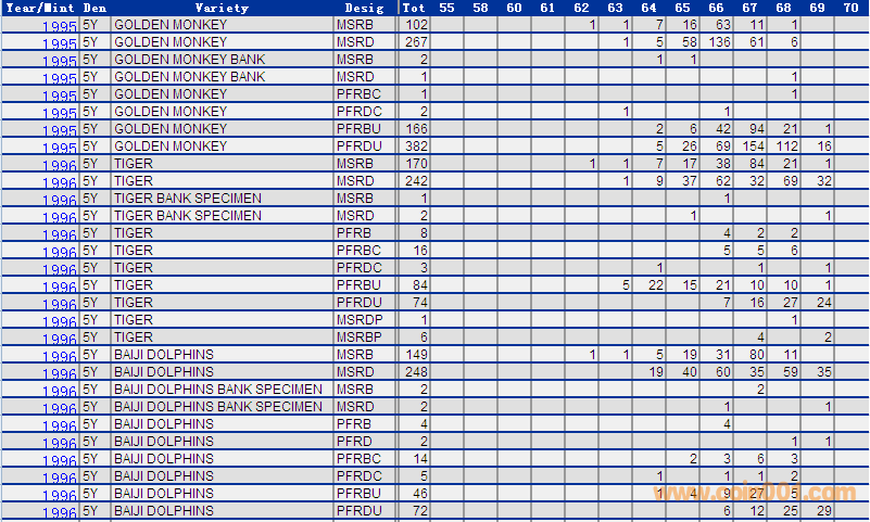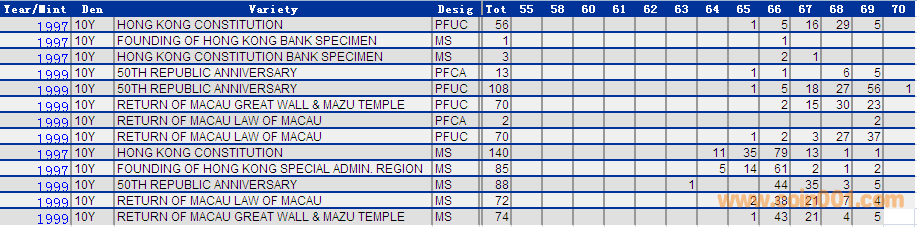 NGC硬幣評(píng)級(jí)分?jǐn)?shù)分布 ..