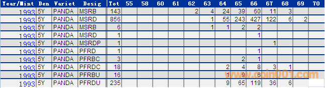 NGC硬幣評級分?jǐn)?shù)分布 ..