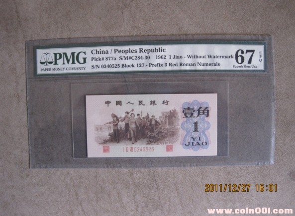 出售67EPQ背綠一角一張