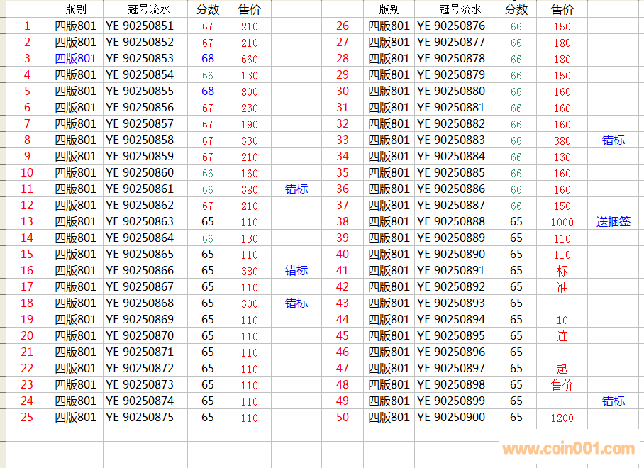 引用 引用第1樓caitou于2017-07-17 11:25發(fā)表的 :電聯(lián)如確認(rèn),尾850-861兩張錯標(biāo)801。賣家包順豐安全到手!