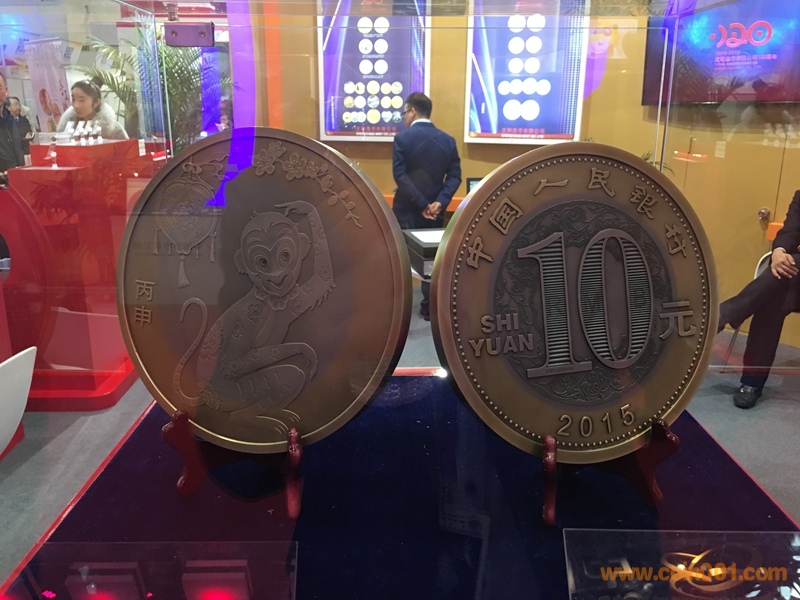 其次看國(guó)內(nèi)印鈔造幣機(jī)構(gòu)對(duì)外銷售公司展臺(tái),如:沈陽(yáng)泉銀、上海申泉、南京蘇泉等。一般他們都會(huì)有新品銷售。比如說今年我在上海申泉購(gòu)買的三色章,國(guó)內(nèi)少見,工藝精湛,三色材質(zhì)可以適用于紀(jì)念幣領(lǐng)域,說不定現(xiàn)在就是一個(gè)雛形。沈陽(yáng)泉銀現(xiàn)場(chǎng)壓制兩色紀(jì)念幣,我也壓制了一枚。
