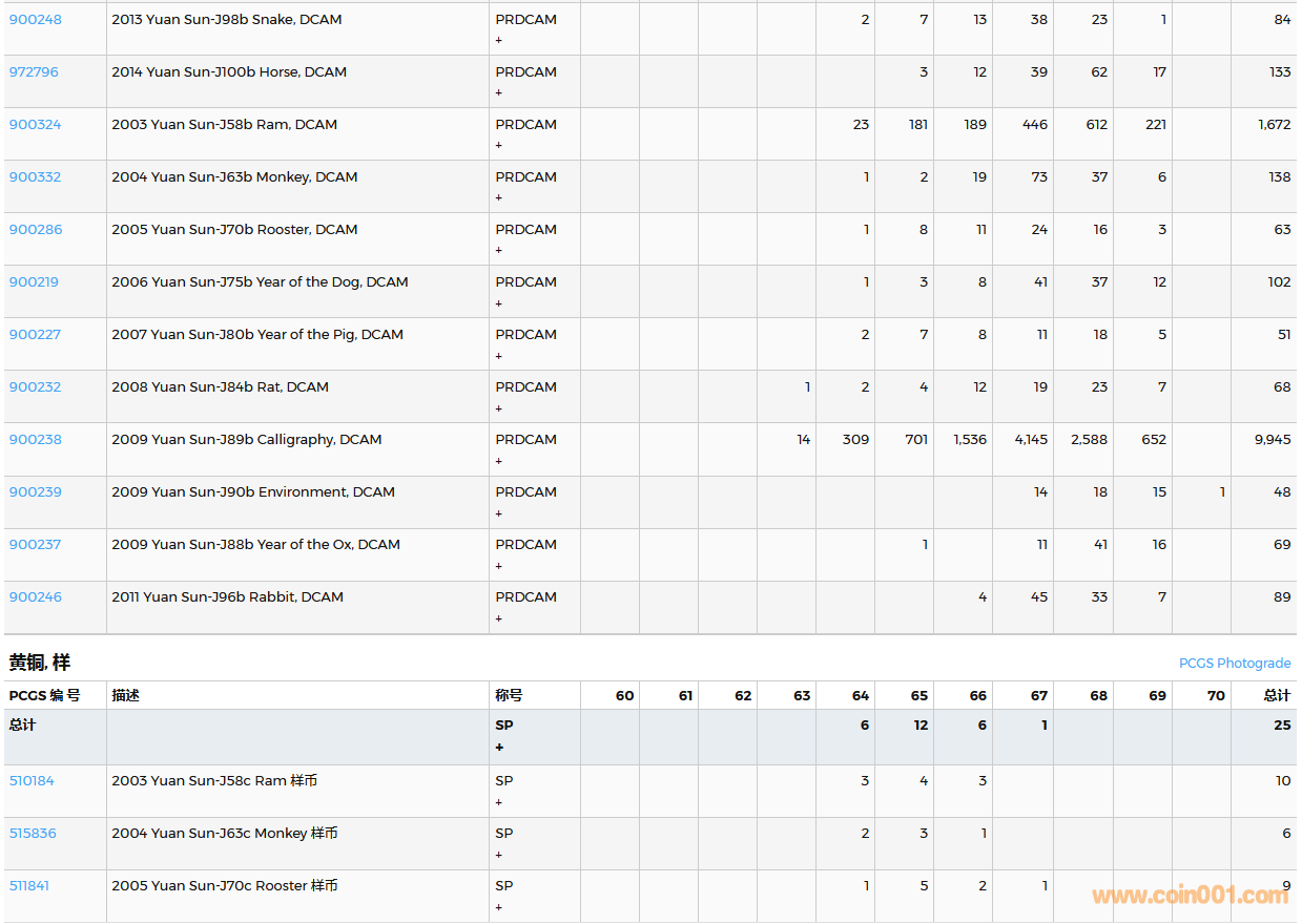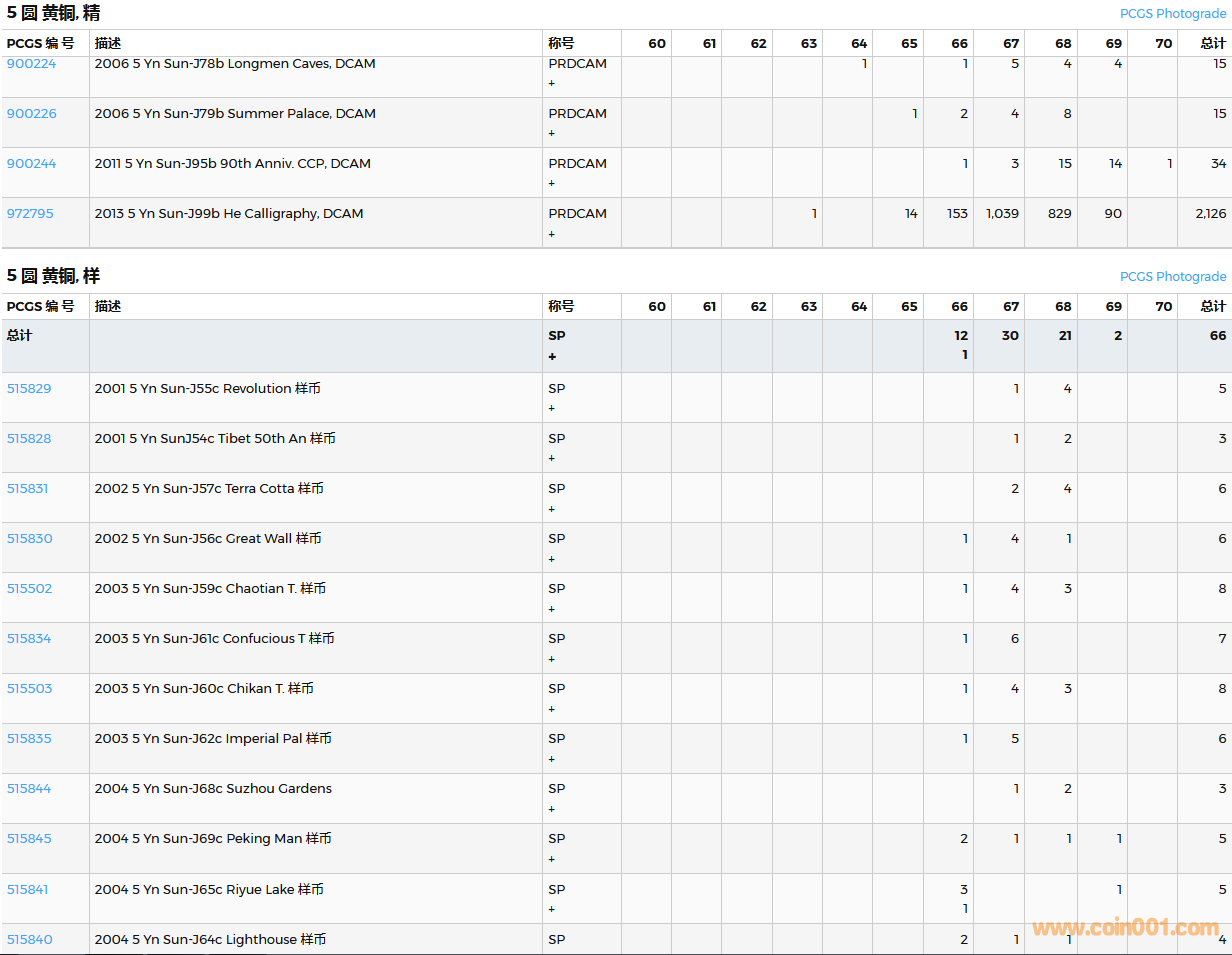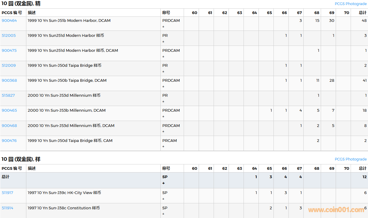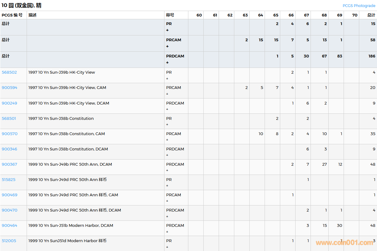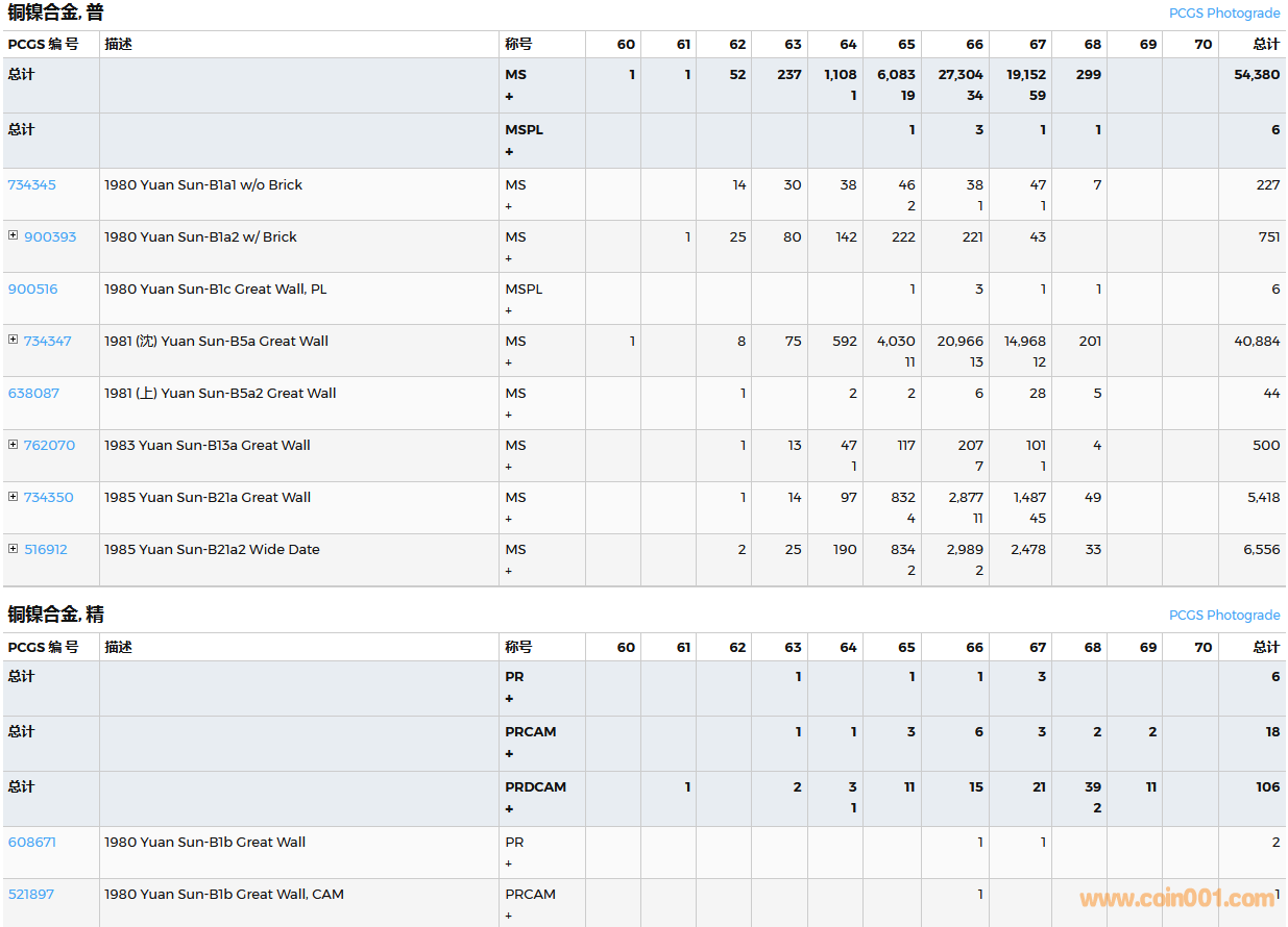 PCGS硬幣評級數(shù)量報告( ..
