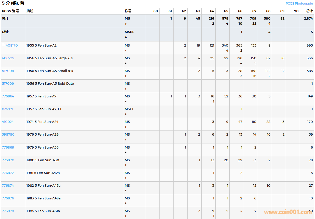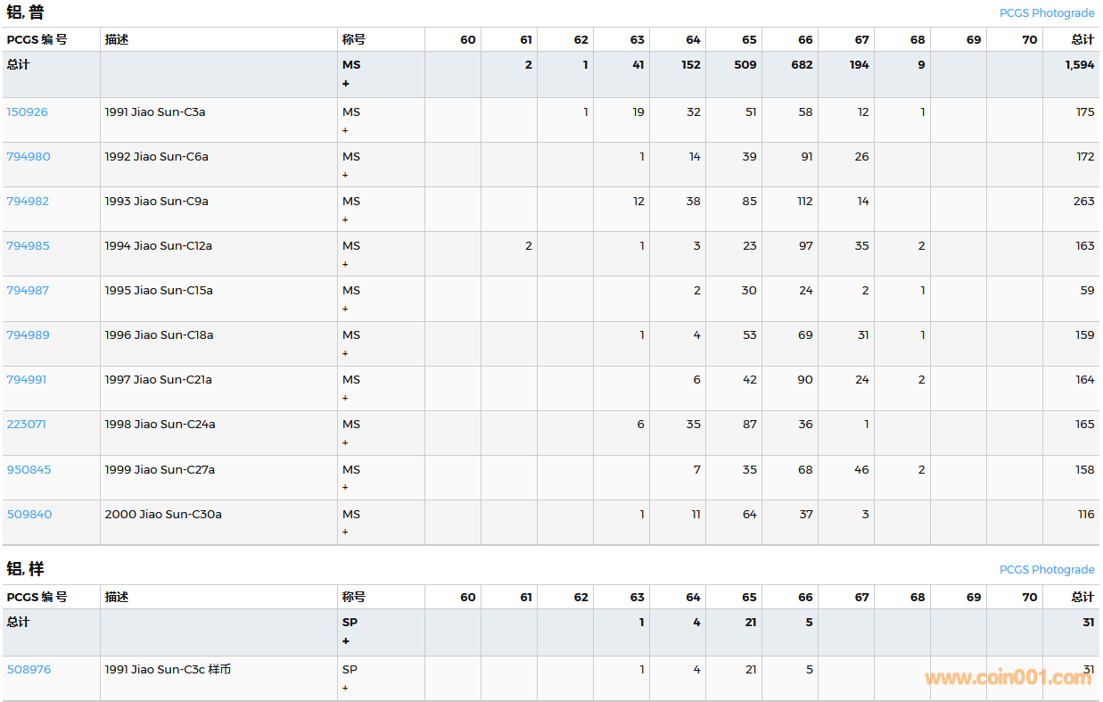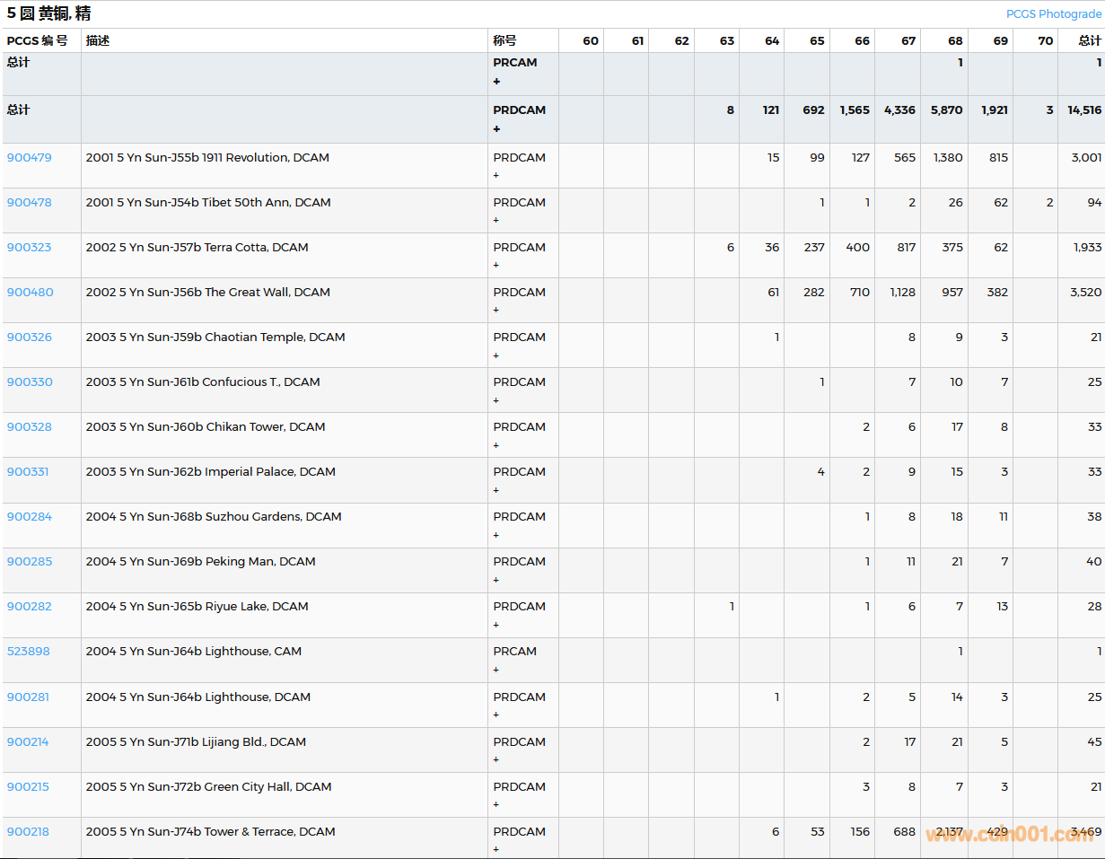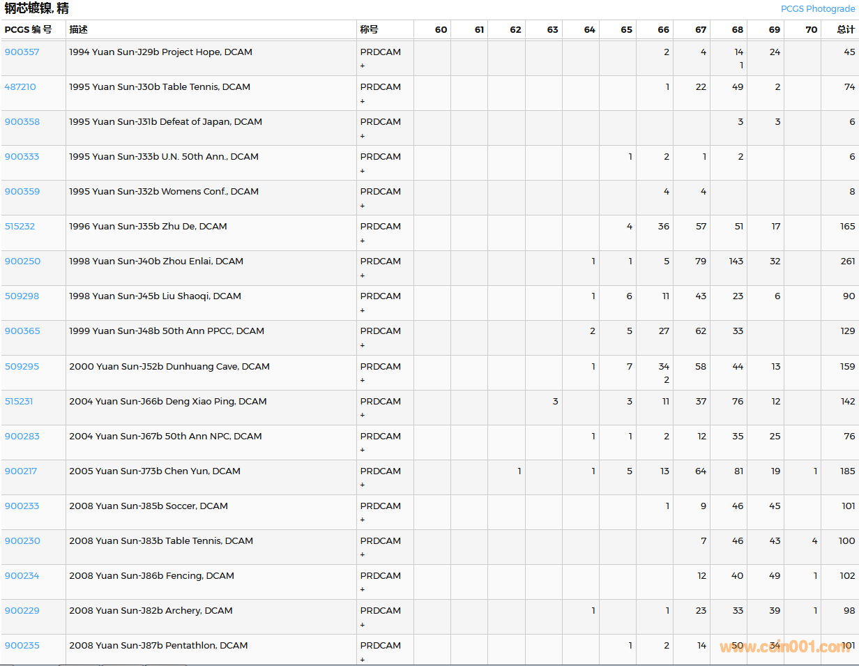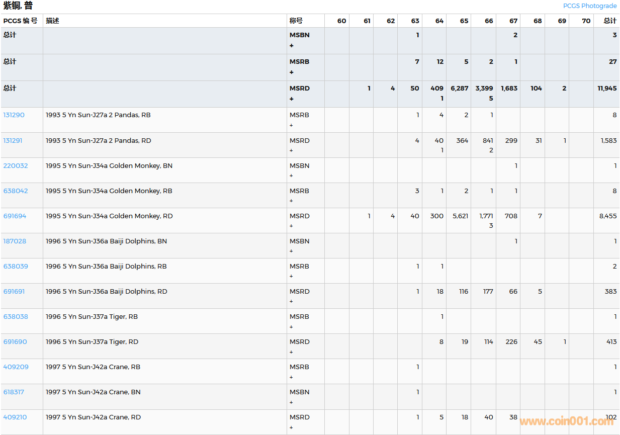 PCGS硬幣評級數(shù)量報告( ..