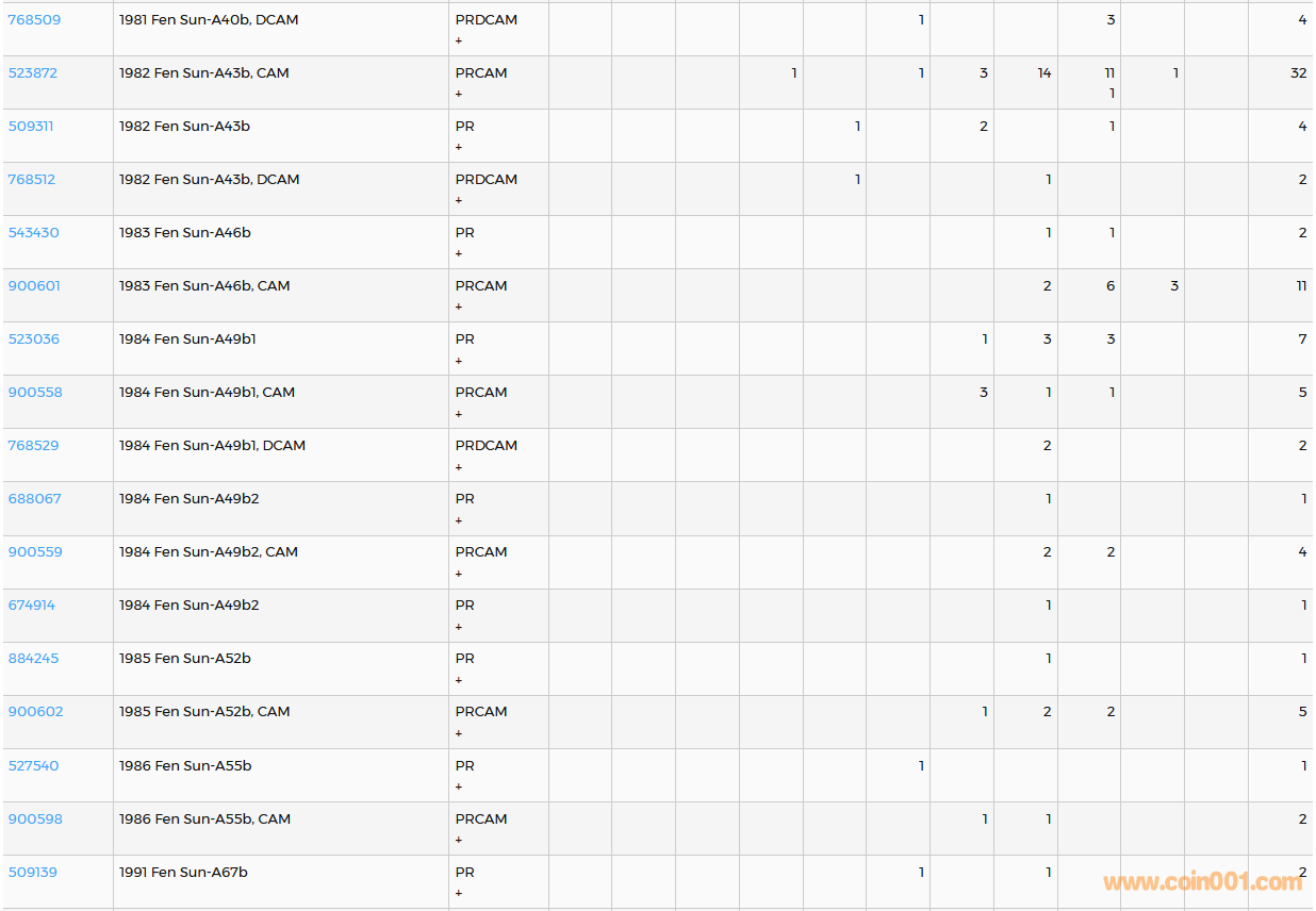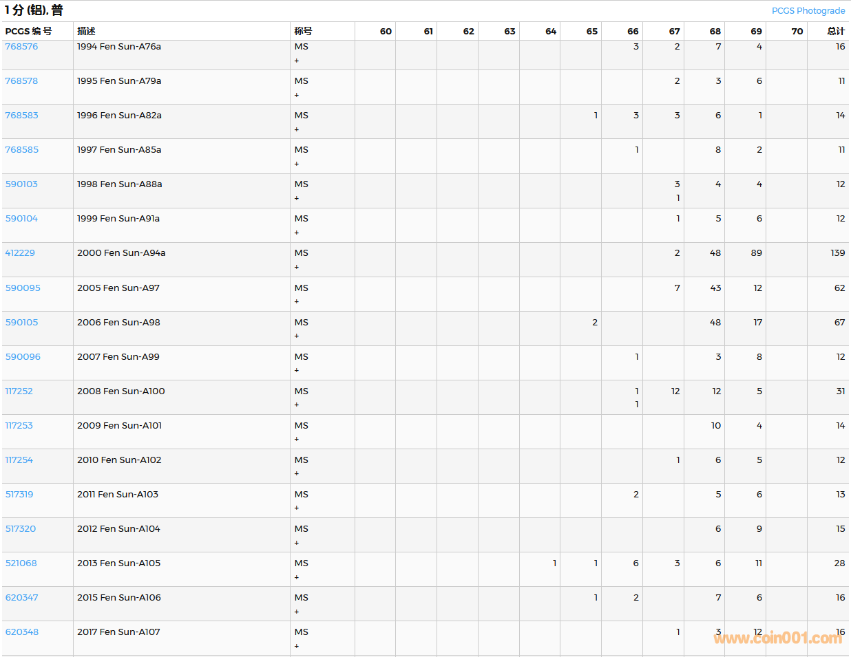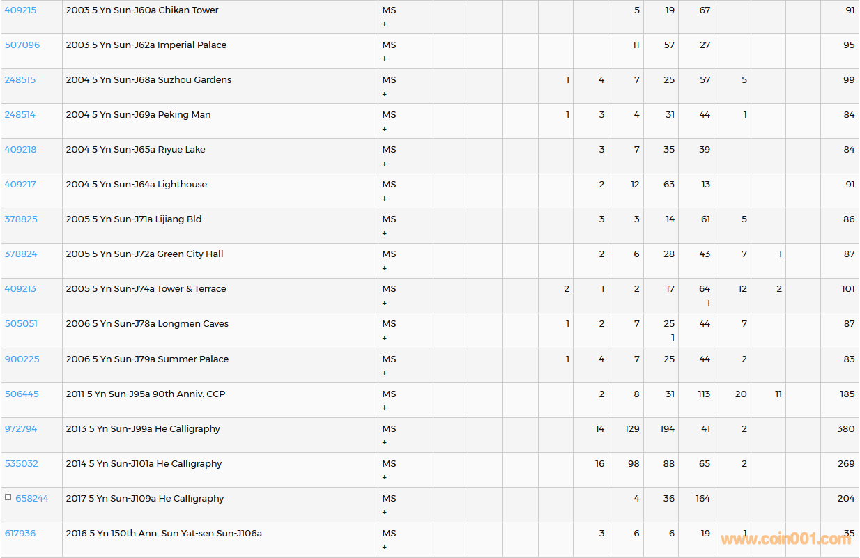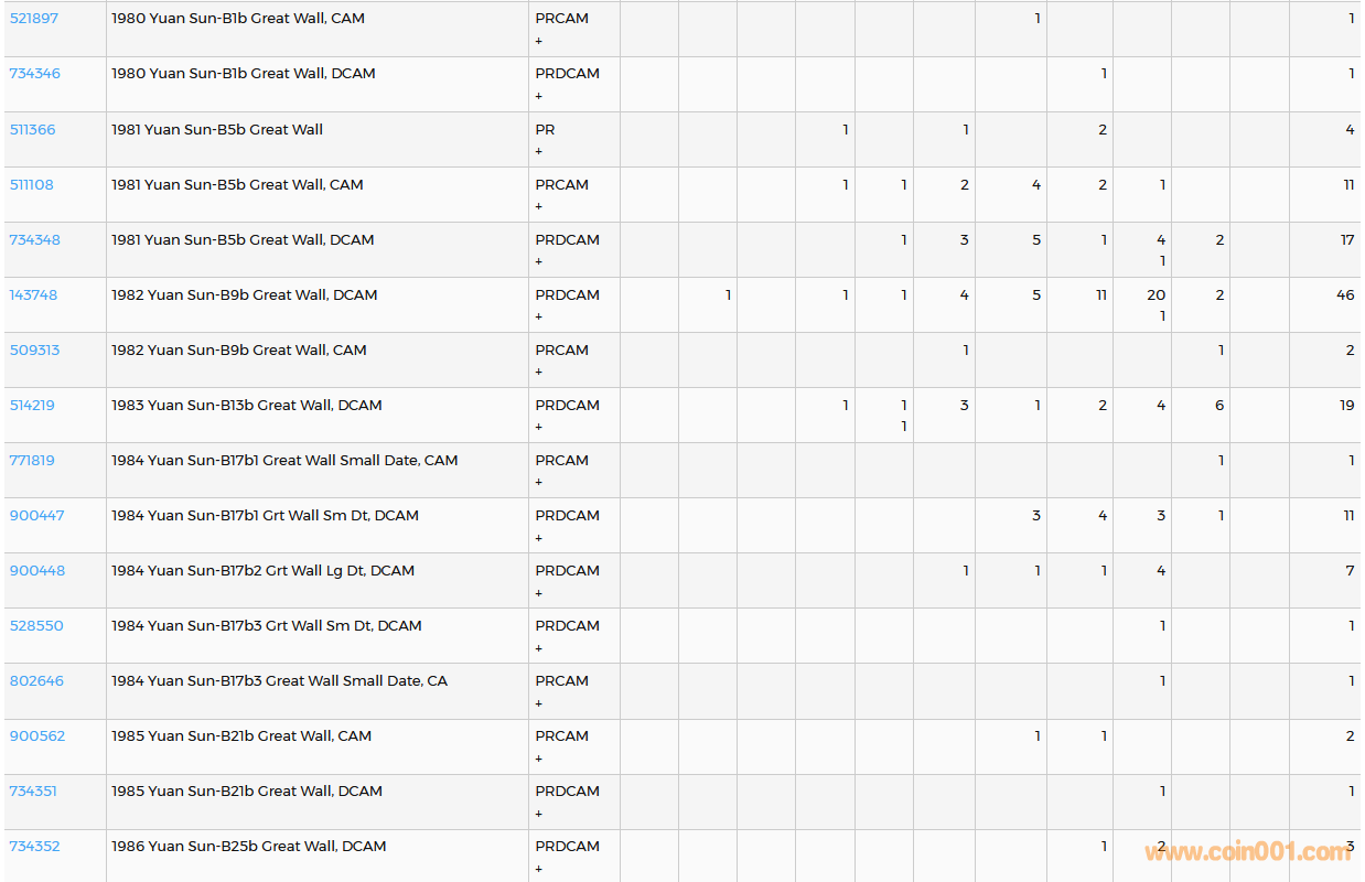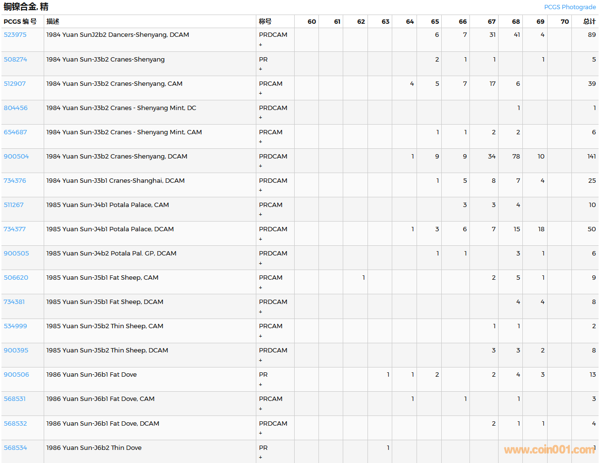 PCGS硬幣評級數(shù)量報告( ..