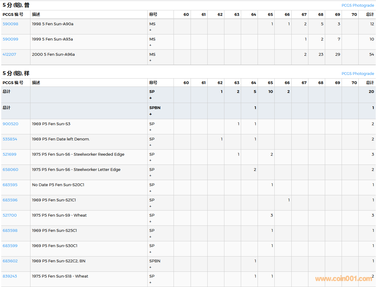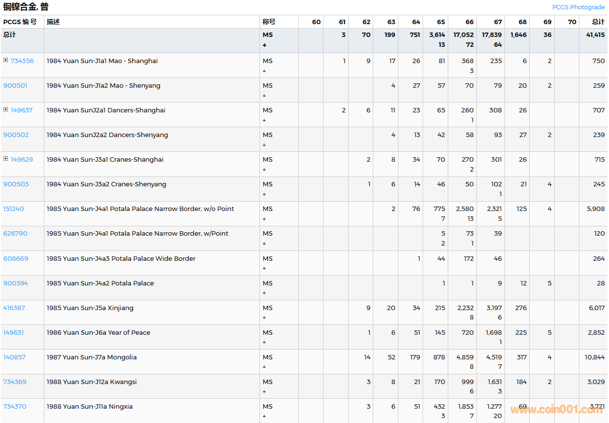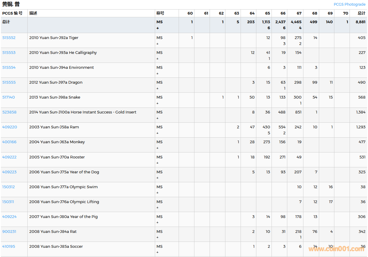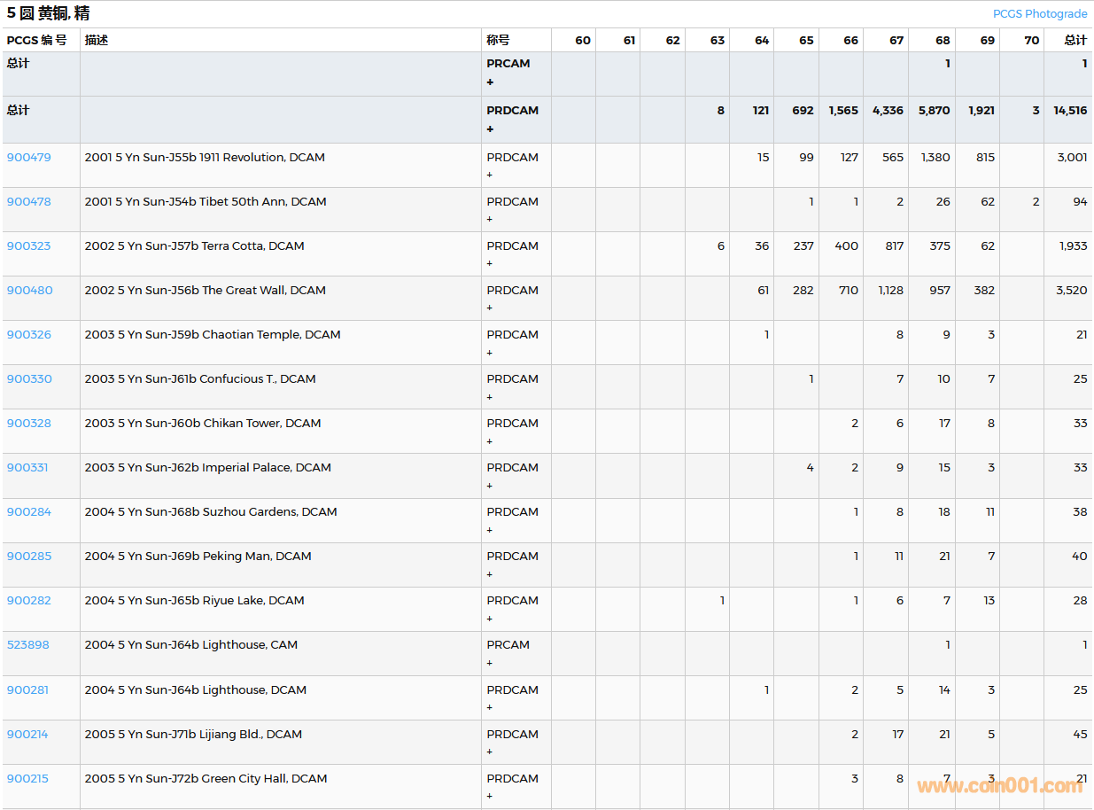 PCGS硬幣評(píng)級(jí)數(shù)量報(bào)告( ..