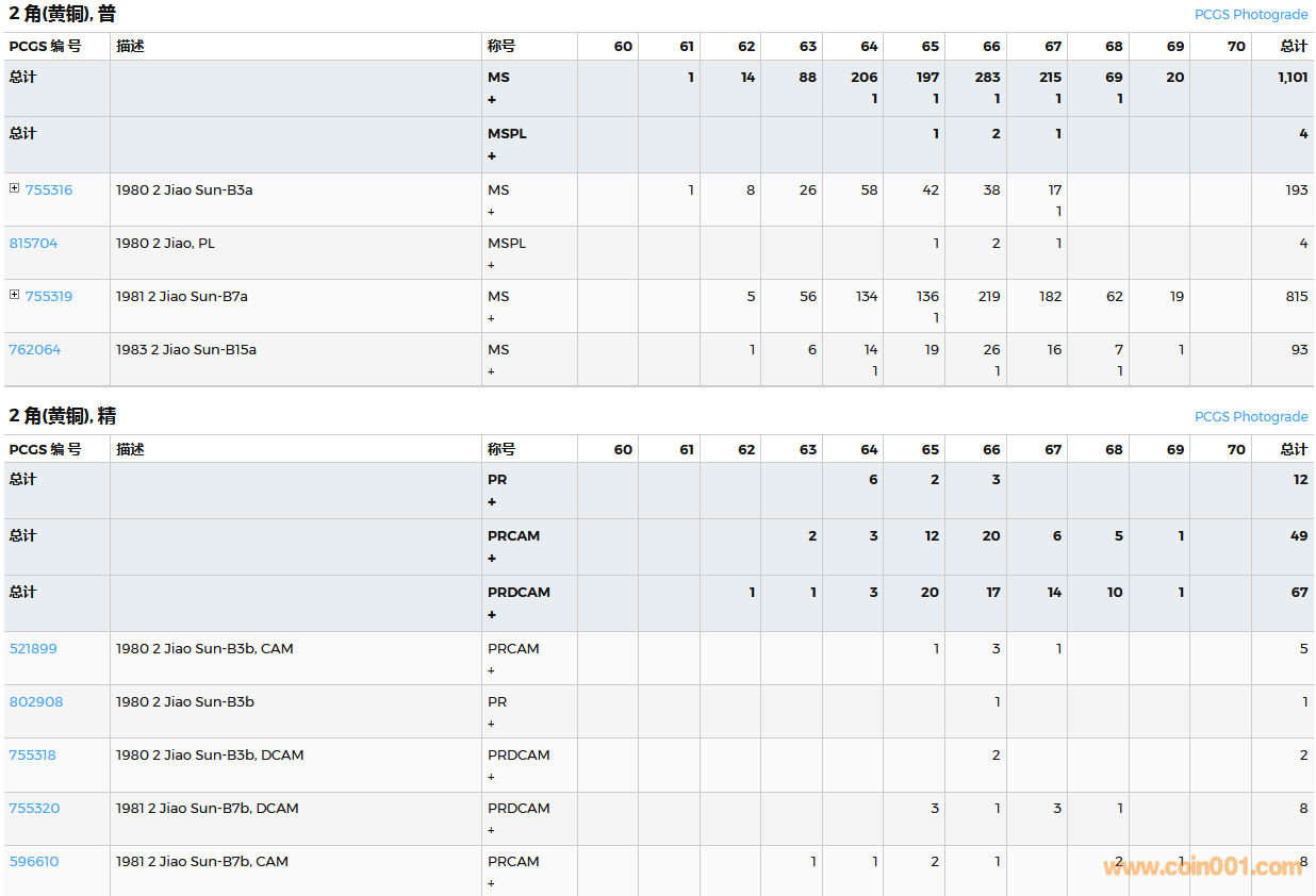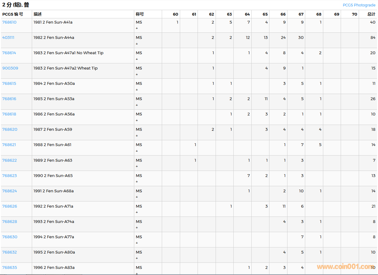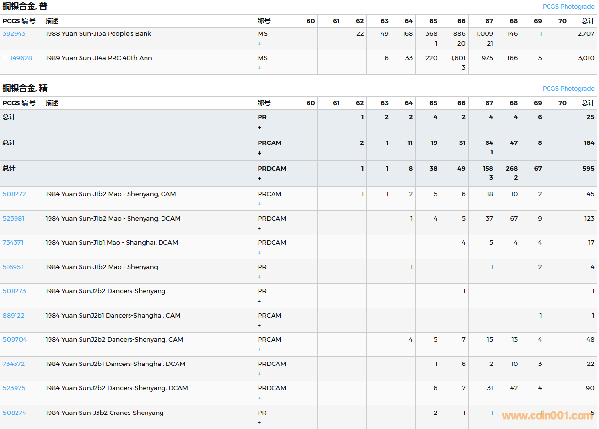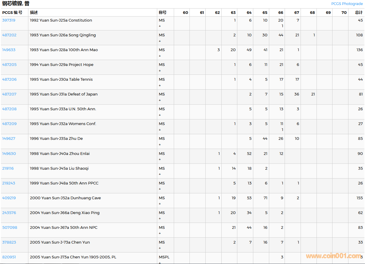 PCGS硬幣評(píng)級(jí)數(shù)量報(bào)告( ..