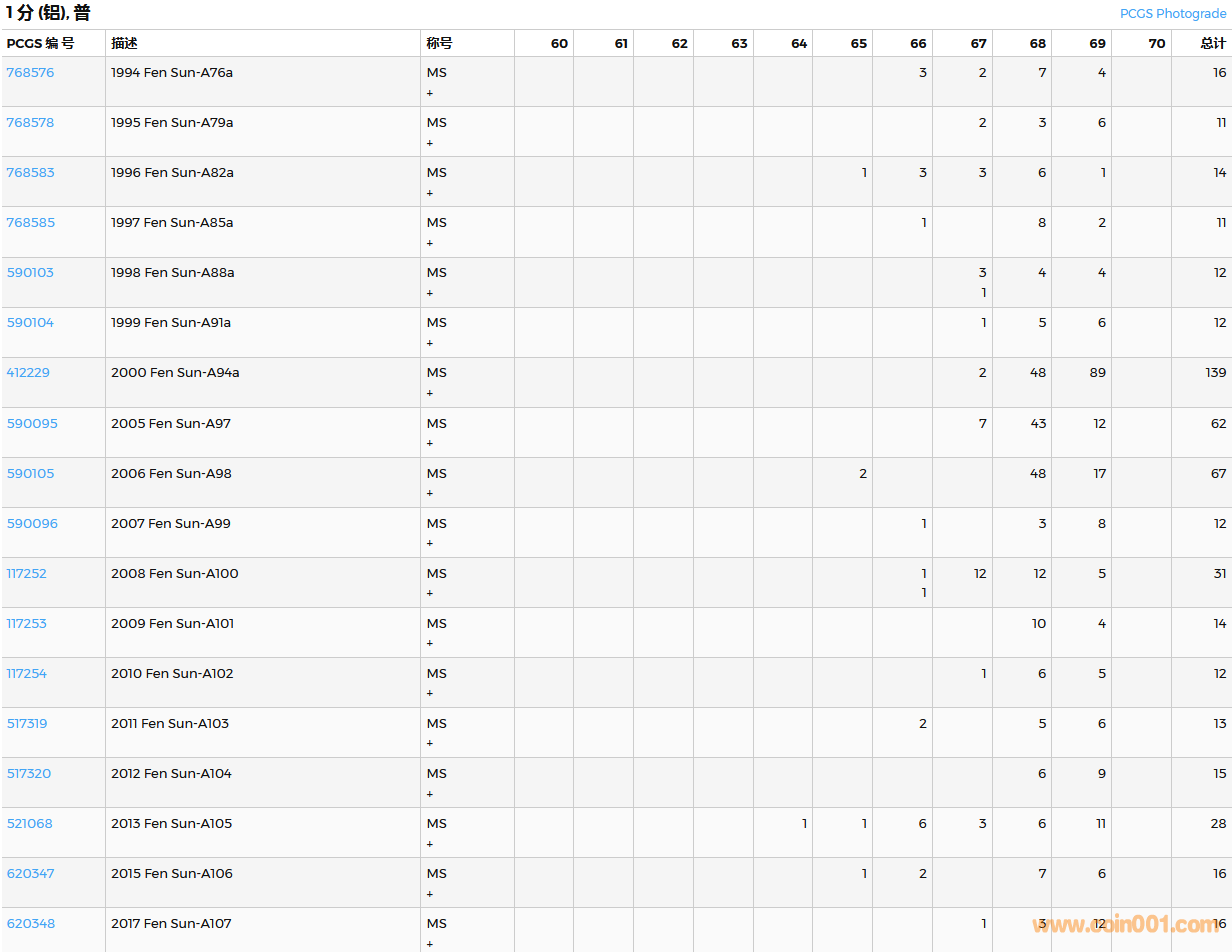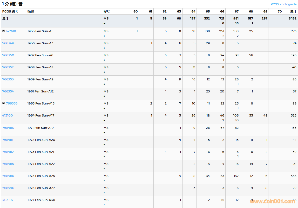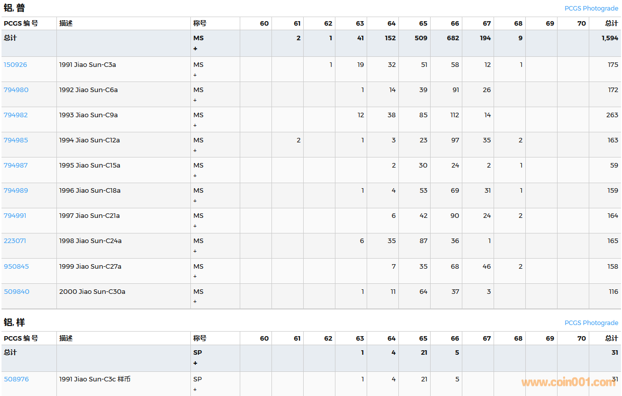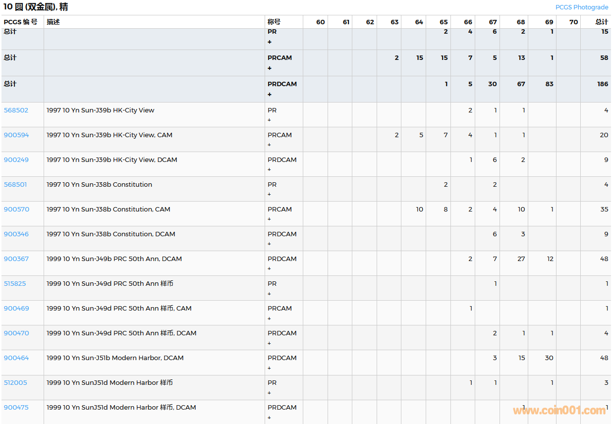 PCGS硬幣評(píng)級(jí)數(shù)量報(bào)告( ..