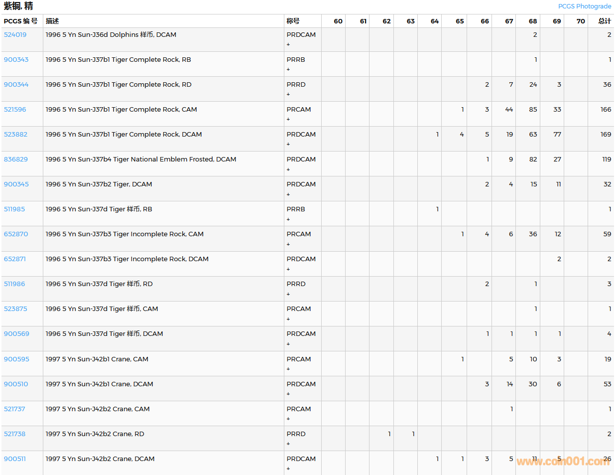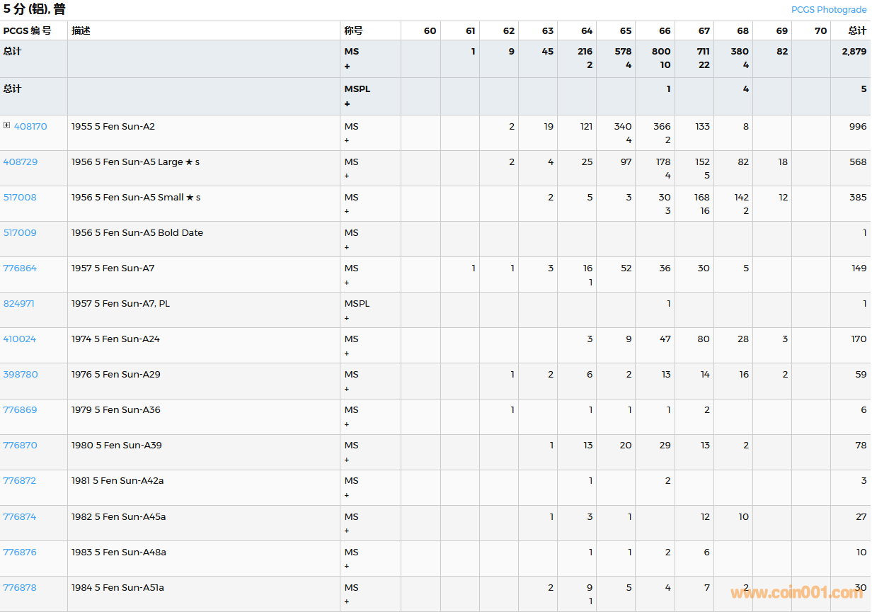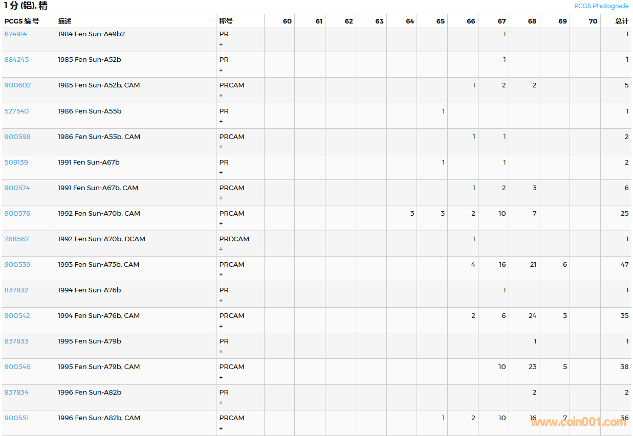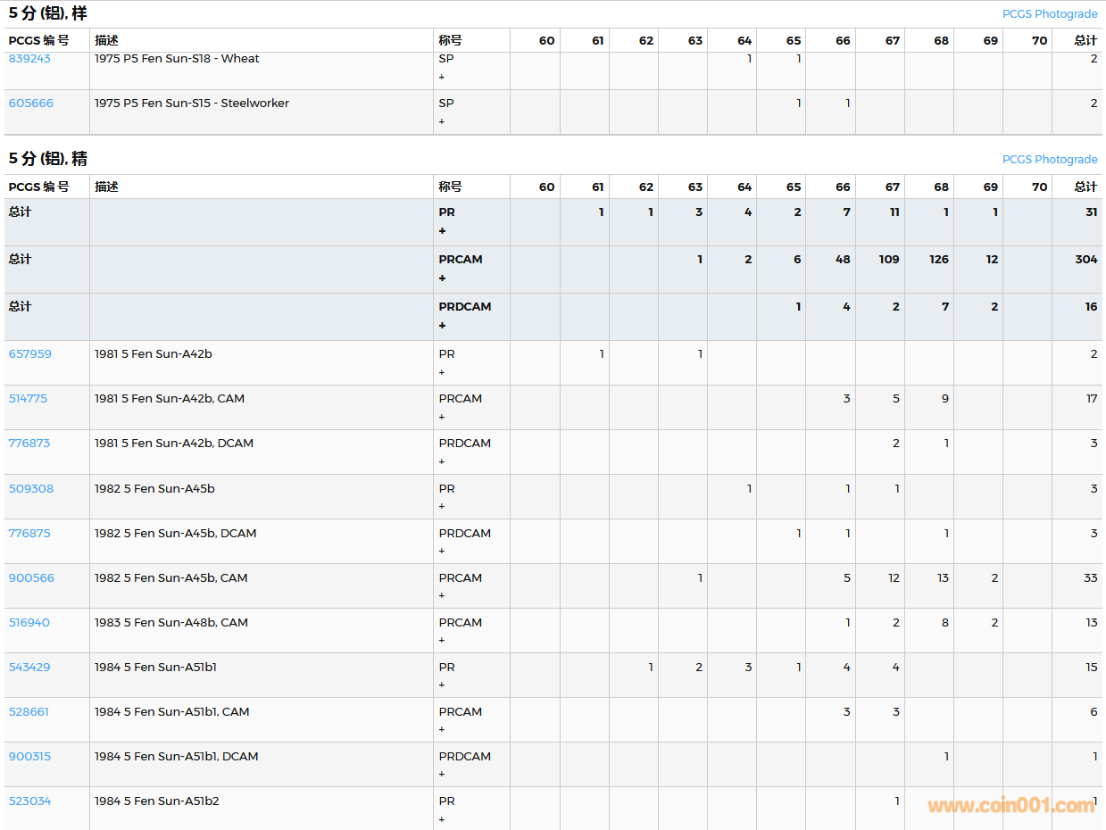 PCGS硬幣評(píng)級(jí)數(shù)量報(bào)告( ..