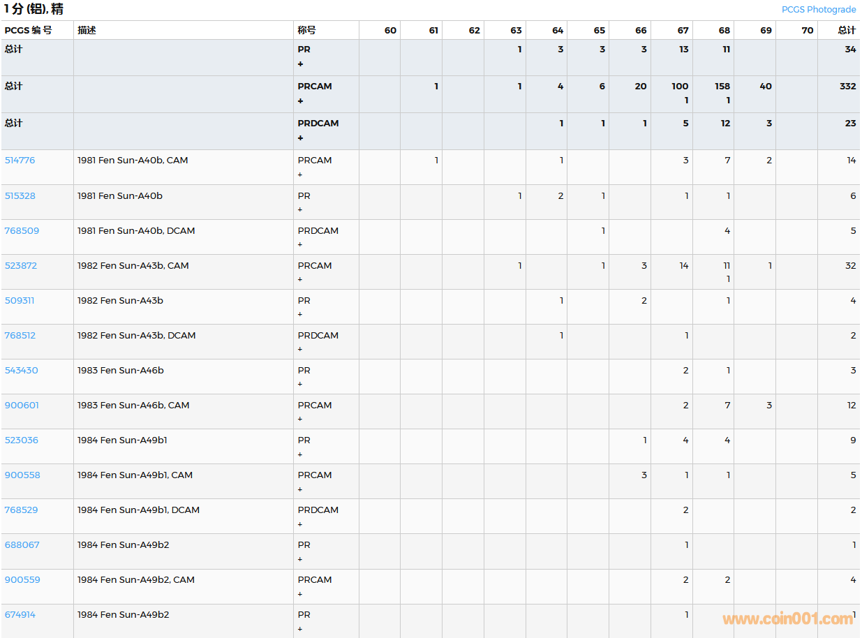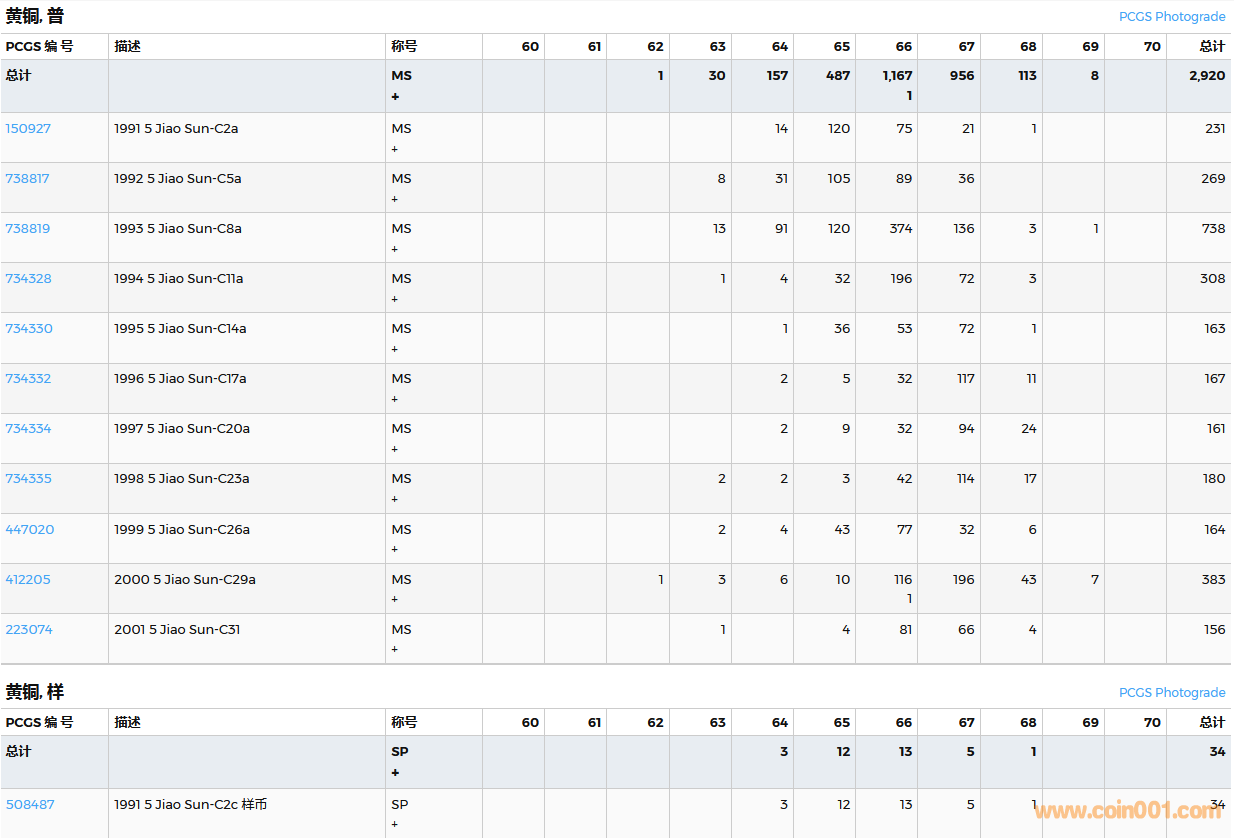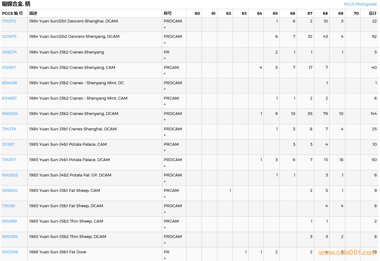 PCGS硬幣評(píng)級(jí)數(shù)量報(bào)告( ..