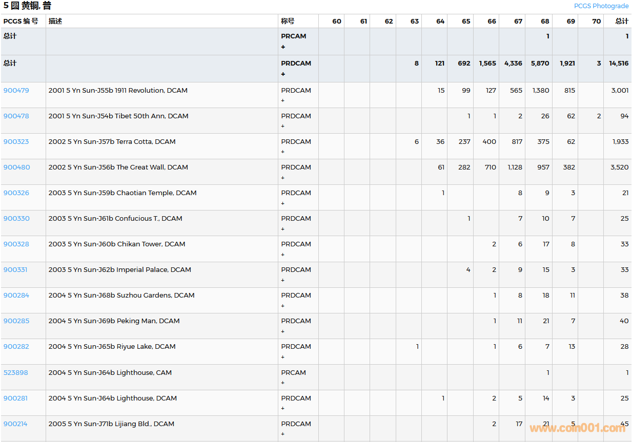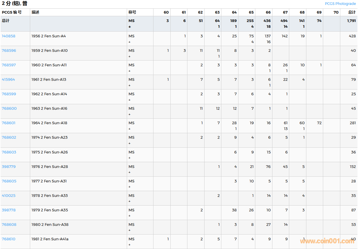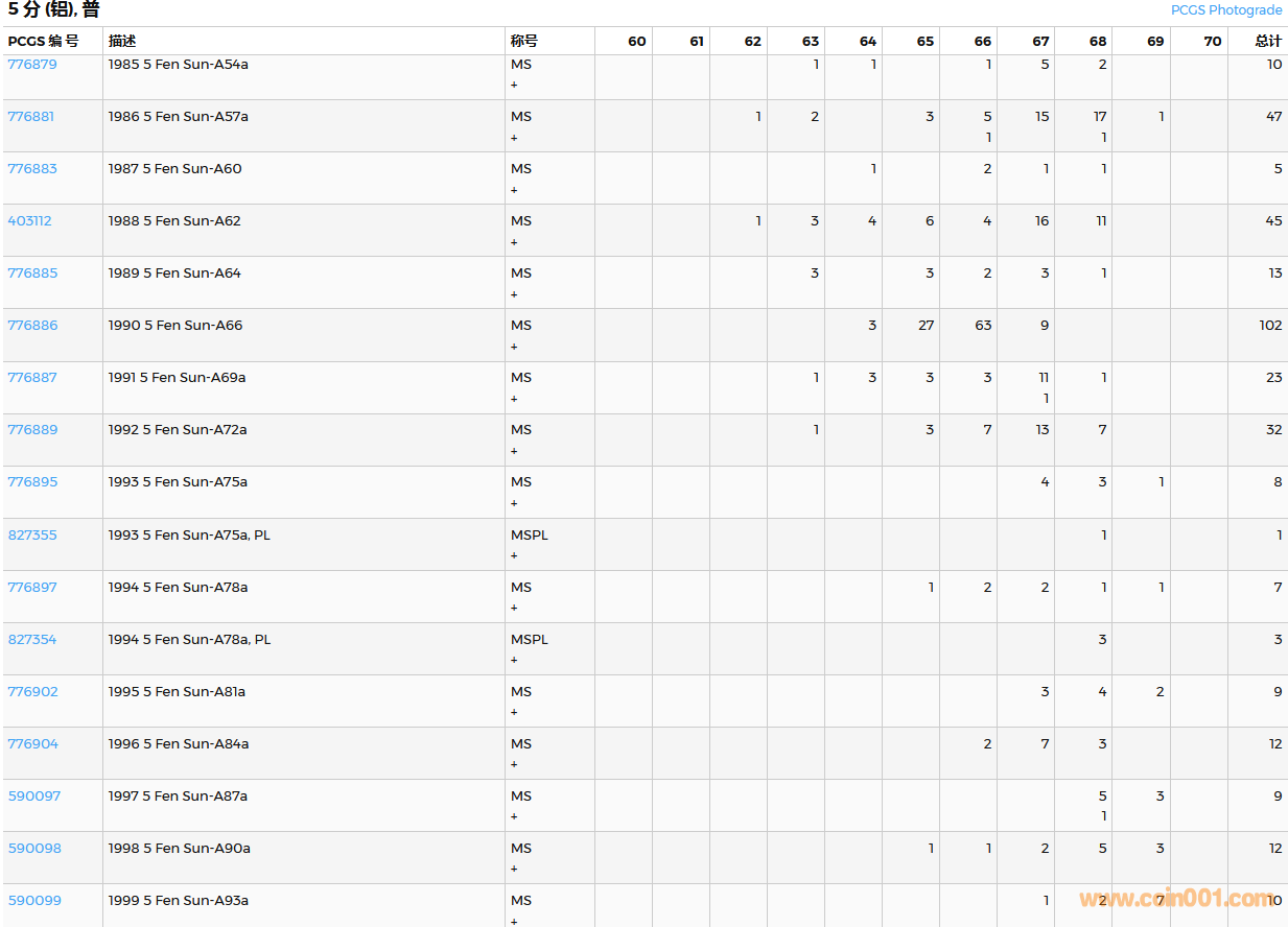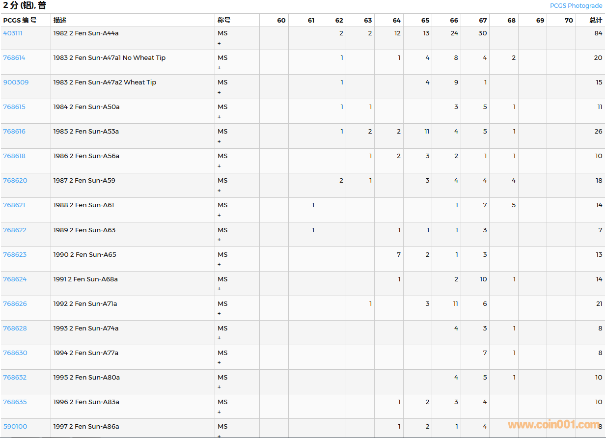 PCGS硬幣評(píng)級(jí)數(shù)量報(bào)告( ..