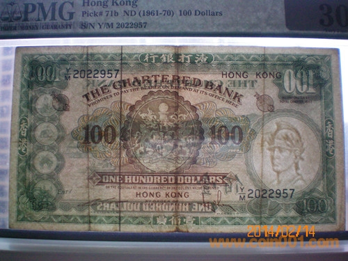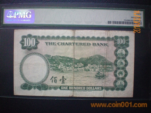 PMG評級 - VF 30 --- 香港渣打銀行100元(壹佰圓) 發(fā)行日期:無年份(1962年-1970年) 1600元