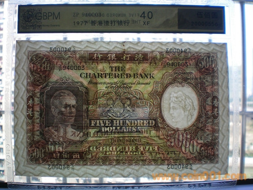 GBPM評級 40XF --- 香港渣打銀行 500元 (伍百元) 1977年1月1日發(fā)行 2600元