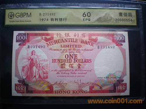 GBPM評級 60E --- 香港有利銀行 100元(壹佰圓) 1974年11月04日發(fā)行 1200元