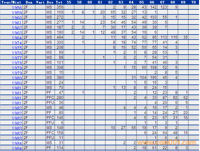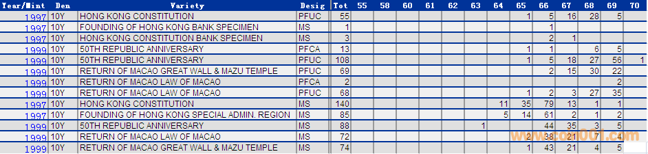NGC硬幣評(píng)級(jí)分?jǐn)?shù)分布 ..