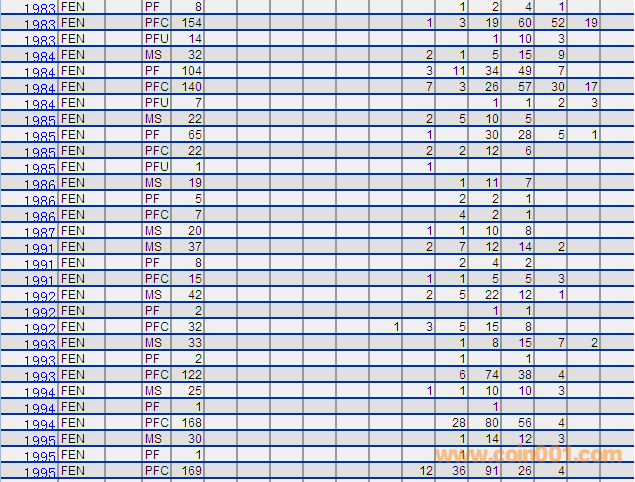 NGC硬幣評級分?jǐn)?shù)分布 ..