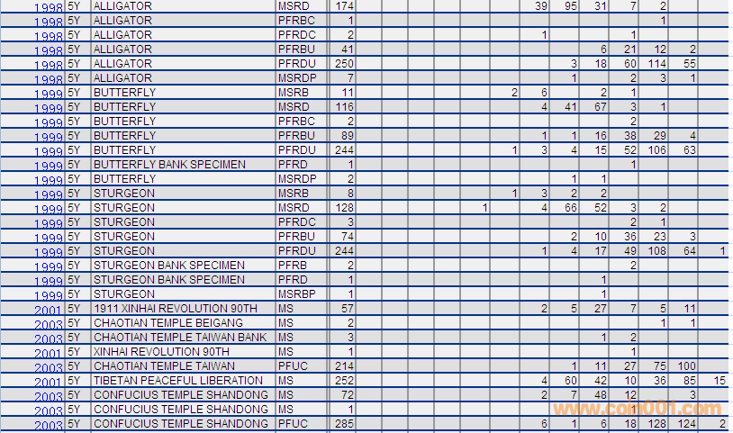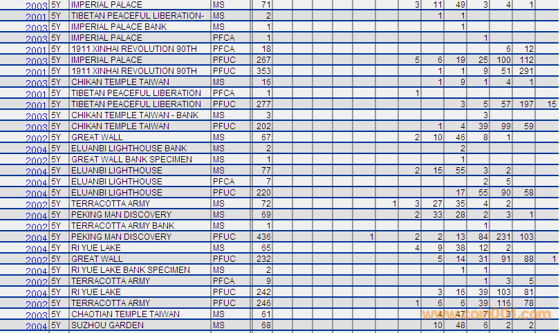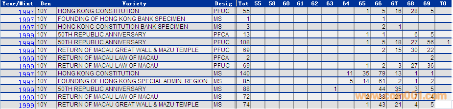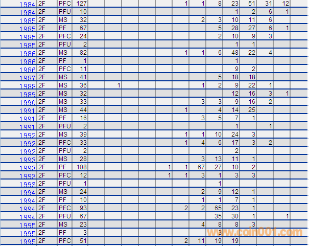 NGC硬幣評級分數(shù)分布 ..