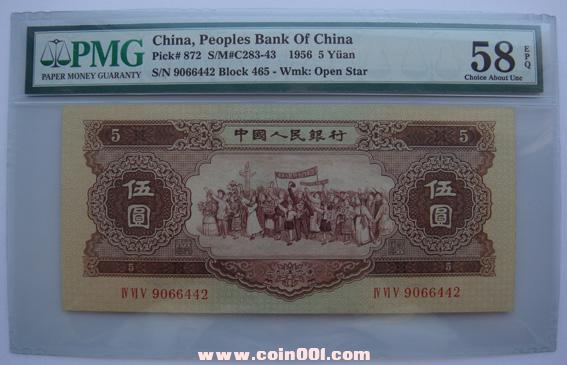 引用 引用第3樓胖丁于2011-09-10 00:46發(fā)表的 : PMG 58EPQ 伍元(海鷗水?。?2000確認一枚