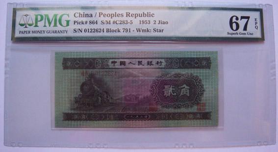 1953年貳角,67E:3800元;