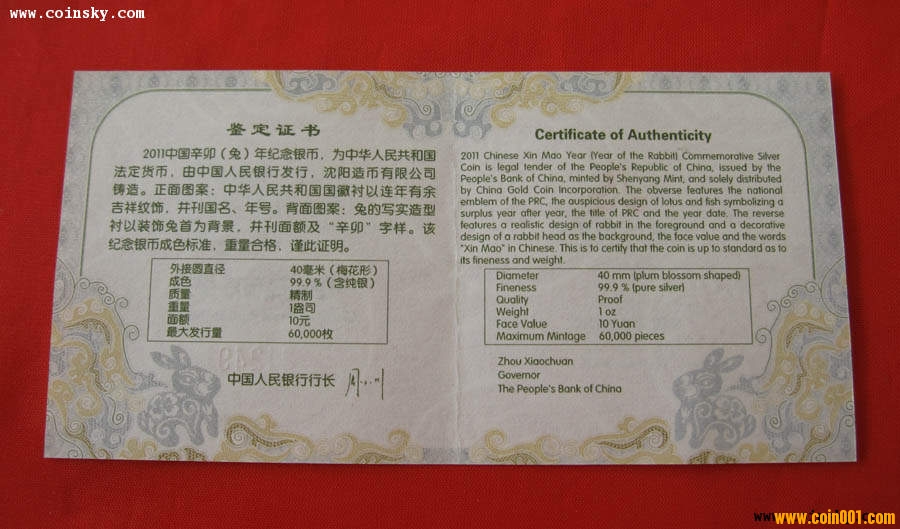 出2011年1盎司梅花兔銀 ..