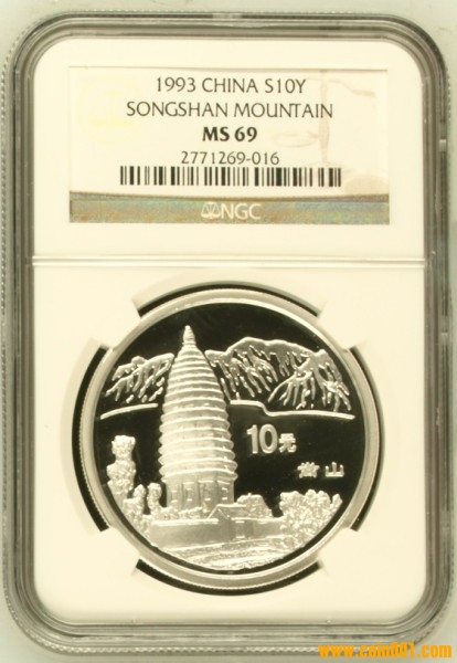 1993年 五岳銀套幣-嵩山 NGC MS 69,1200元